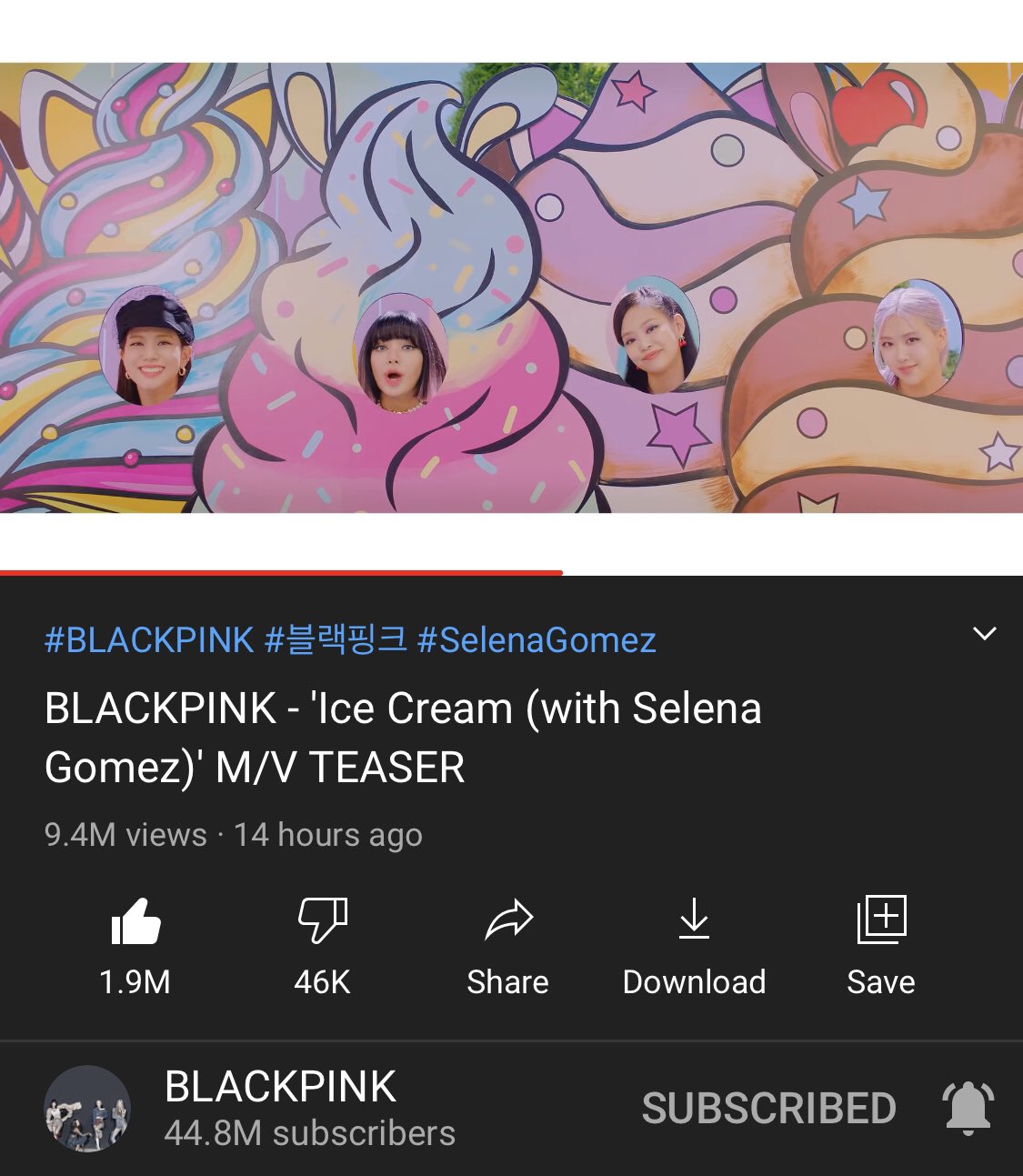 [SelPink] 'Ice Cream Teaser' ทำสถิติเป็น Teaser ที่มียอดไลค์ Youtube 24 ชั่วโมงเยอะที่สุดของเพลงจาก Girl Group ทั้งหมด