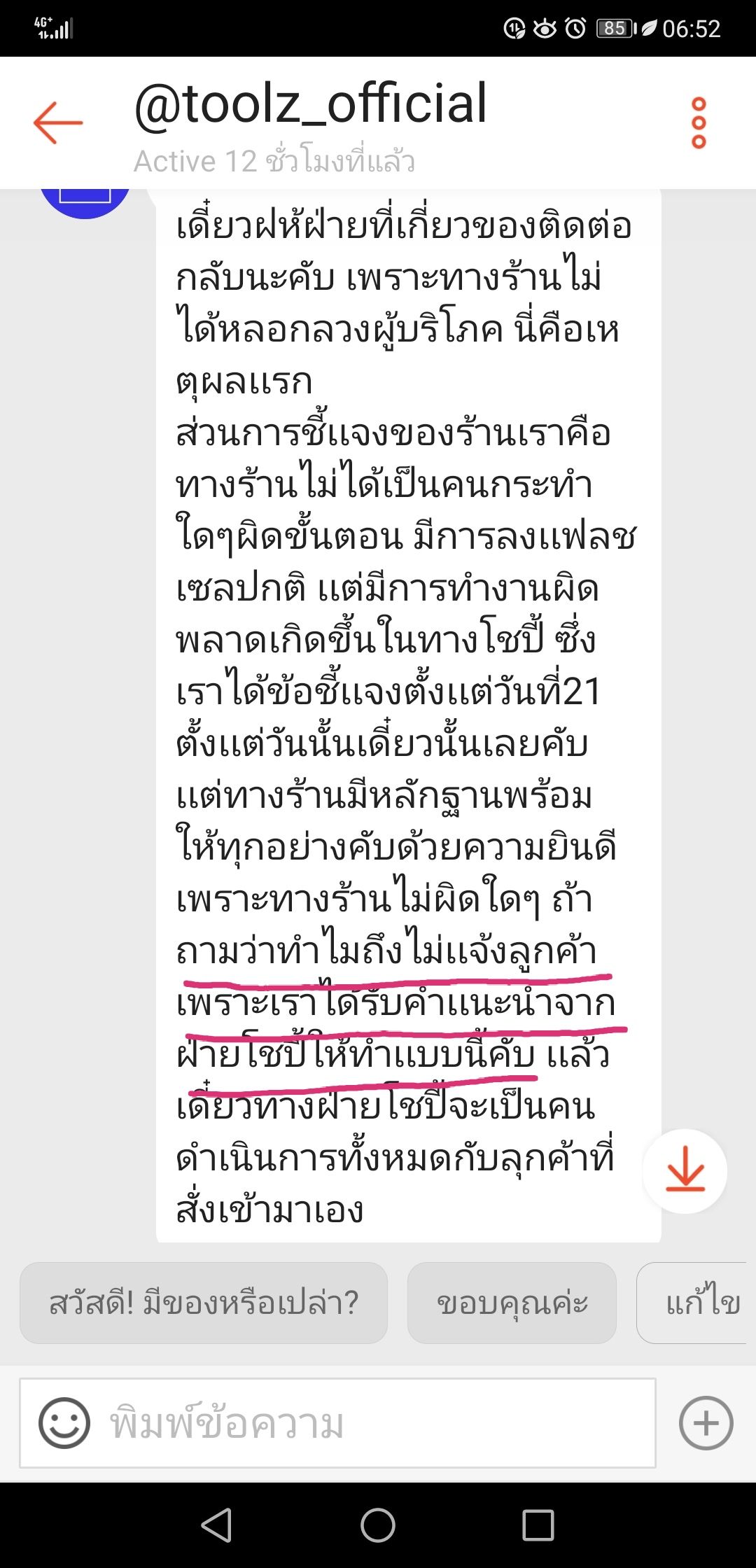 Shopee ร้านค้าไม่ตอบแชท ต้องตามเรื่องเอง ??