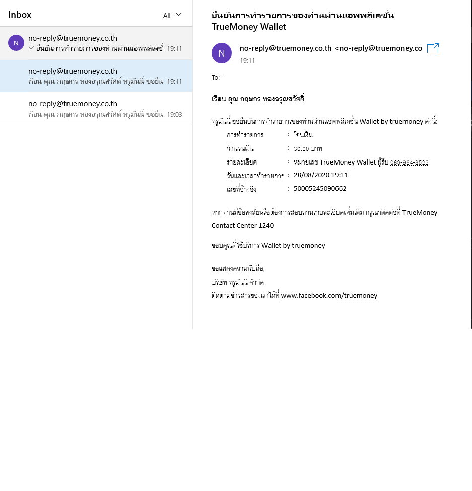 E-mail โอนเอาไปสมัคร Truemoney wallet