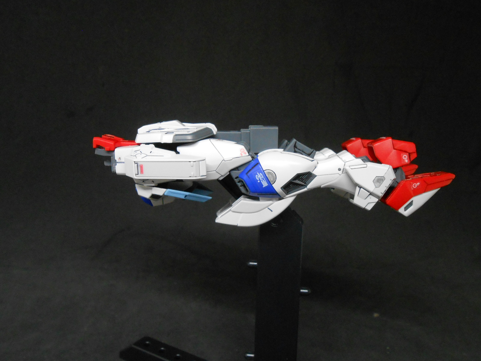 เอาล่ะ กลับมาลงรูปอัพเดตกระทู้กันต่อ ที่เห็นนี้ ก็จะเป็น Chest Flyer ที่เป็นยานบินเฉพาะลำตัวท่อนบน ช่วงไหล่ก็ต้องพับมาข้างหน้า แต่ตอนพับไหล่ รวมทั้งแขน ก็ต้องระวังเขาด้วย สำหรับแขนขวา ก็จะโน้มมาข้างหน้าและจะใช้ Beam Rifle ส่วนแขนซ้ายจะมุดไปด้านข้าง และจะติดโล่