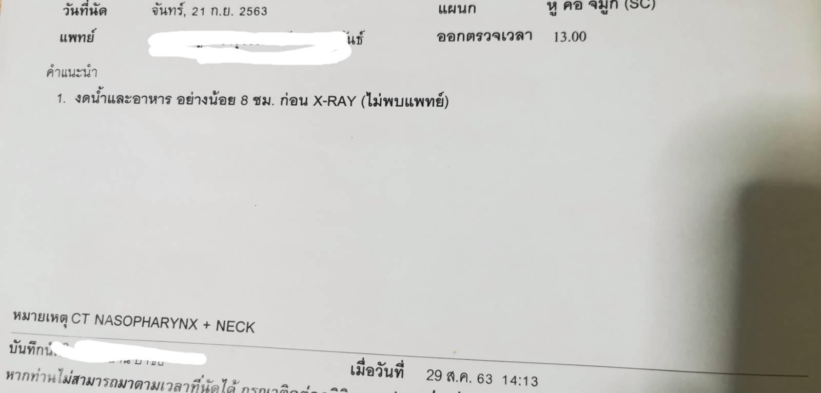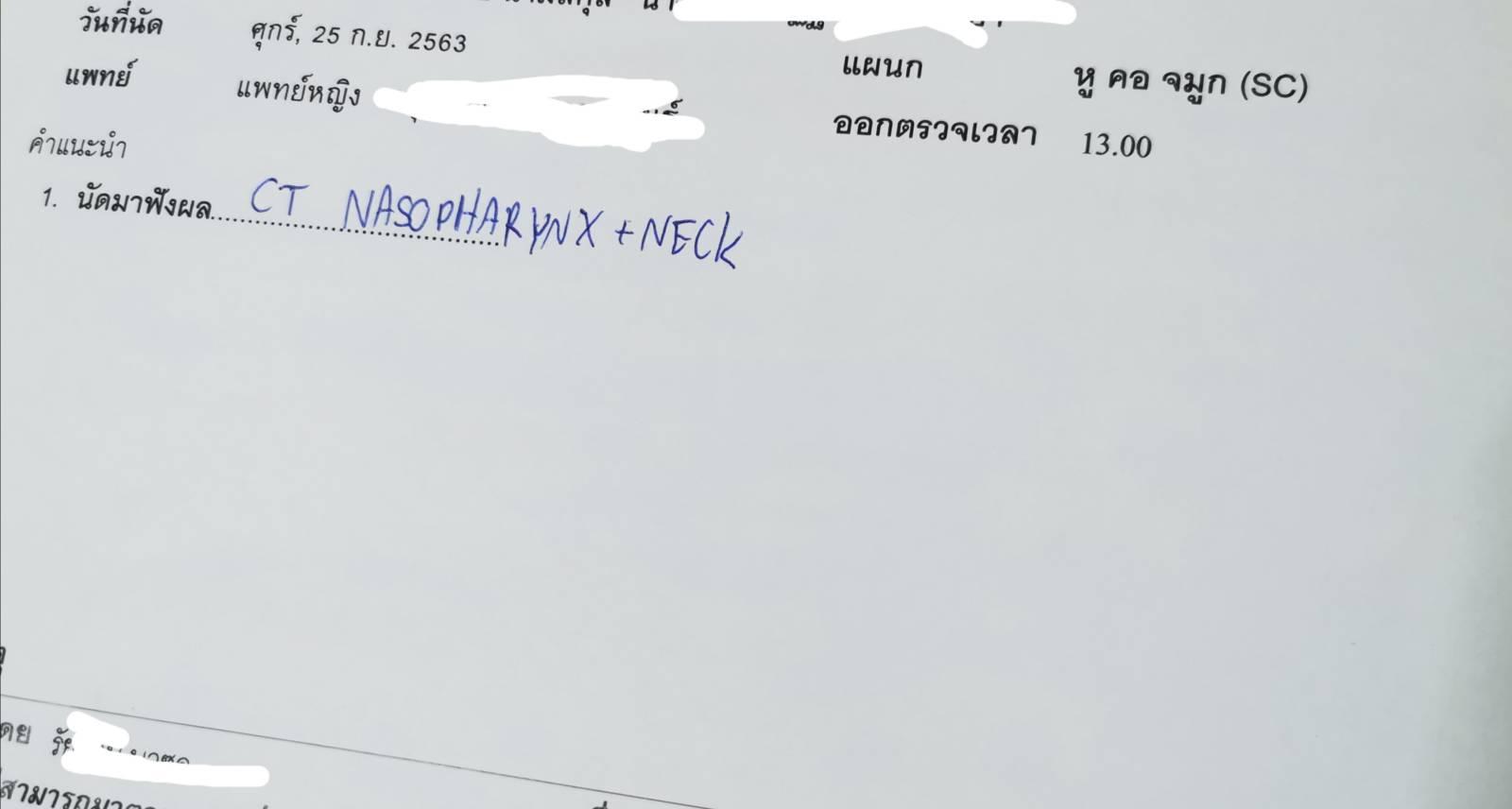 วันนี้มาตามนัดที่คุณหมออายุรกรรมได้นัดคุณหมอด้านหูคอจมูก
