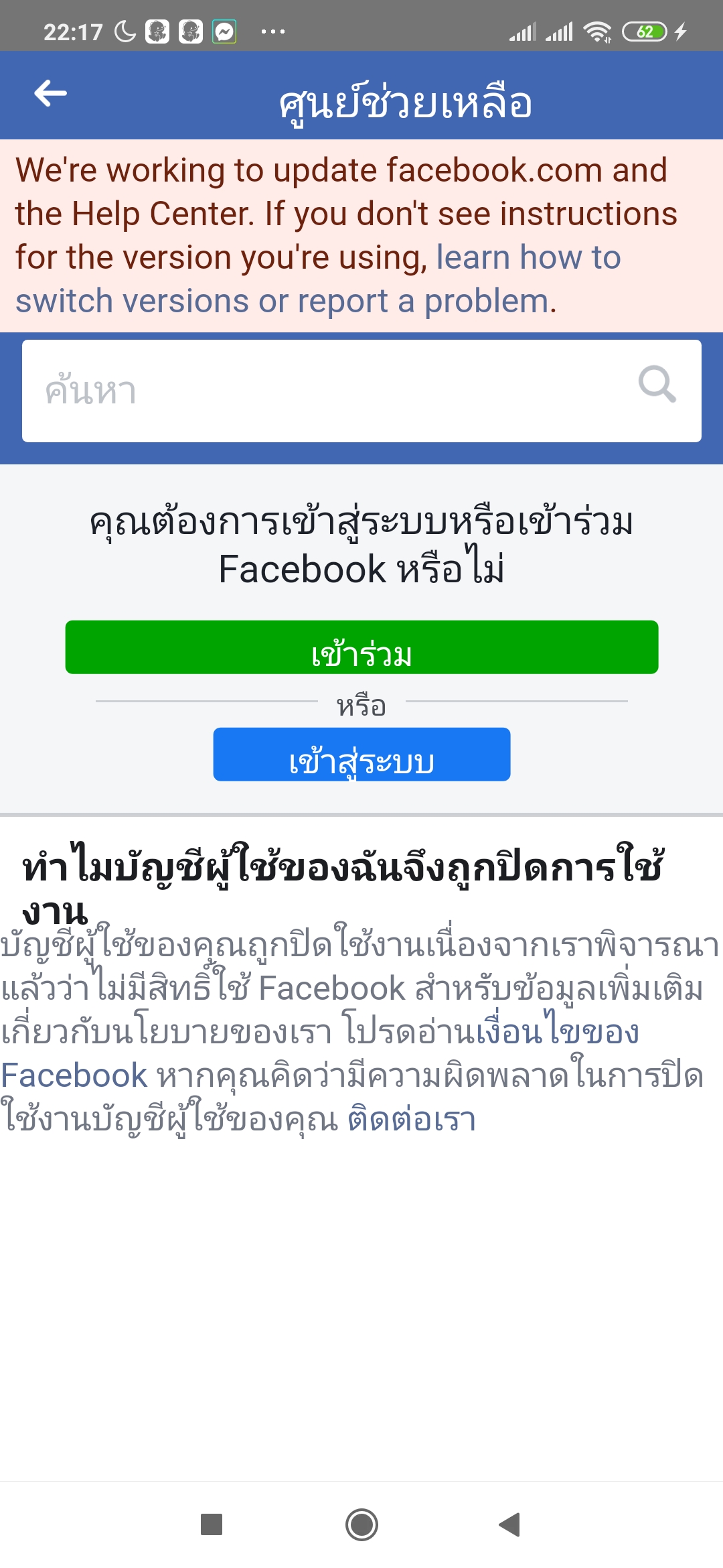 Facebookถูกปิดใครแก้ได้บ้างคะ