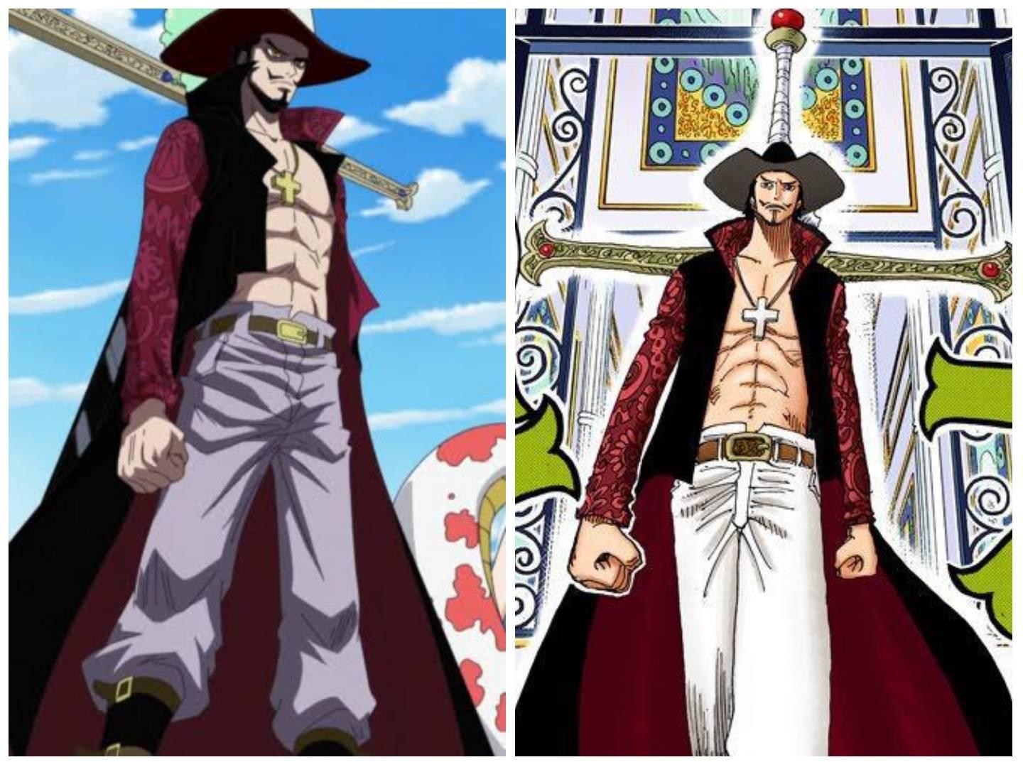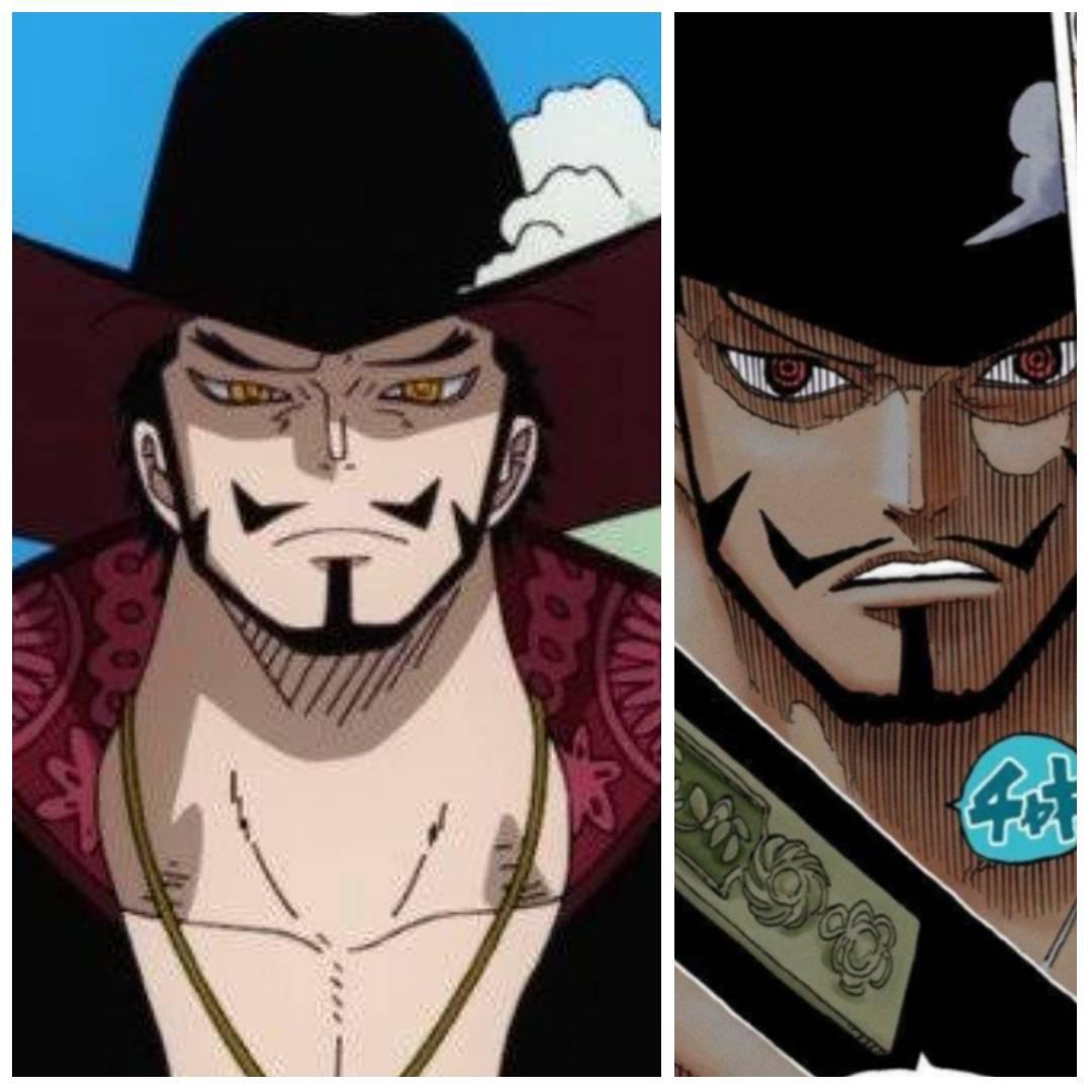 ยังอยู่ที่เรื่องของตา ในมังงะโอดะให้ตาของมิฮอว์คเป็นสีแดง อาจจะเพราะเข้าธีมสีมั้ง แต่ในอนิเมตาถูกเปลี่ยนเป็นสีเหลือง ที่คล้ายกับตาของเหยี่ยวจริงๆ มากกว่า
