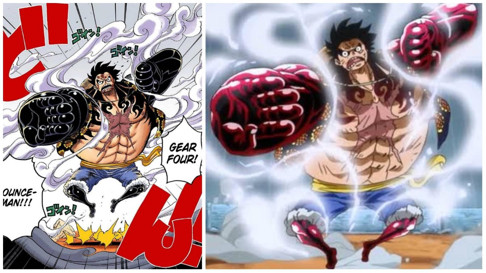 อีกเรื่องคือสีของฮาคิ ในมังงะเราจะเห็นสีของฮาคิด้วยการถมดำเฉยๆ แม้แต่เกียร์ 4 บาวน์แมน แต่ในอนิเมอันนี้ดูดีมากครับ ที่เพิ่มสีแดงเข้าไปให้ดูมีพลัง