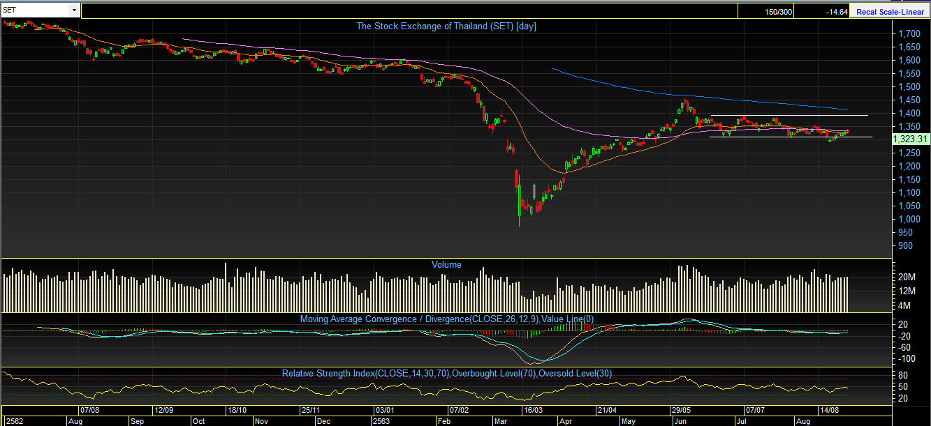 ตลอดทั้งสัปดาห์ที่ผ่านมา ดัชนีตลาดหุ้นไทย ยังคงเคลื่อนไหว Sideways เช่นเดิม อันเนื่องจากขาดปัจจัยหนุนใหม่ๆเข้ามาขับเคลื่อนตลาด แม้ว่ากลางสัปดาห์ มีการแถลงของ Jerome Powell ประธานธนาคารกลางสัหรัฐ (Fed) ระบุว่า จะยังคงอัตราดอกเบี้ยไว้ที่ระดับต่ำ ต่อไปอีกสักพัก และจะปล่อยให้อัตราเงินเฟ้อสูงขึ้น เพื่อเป็นการกระตุ้นเศรษฐกิจ อย่างไรก็ตาม ตลาดไม่ได้ตอบสนองเท่าใดนัก มิหนำซ้ำ เมื่อวันศุกร์ที่ผ่านมา นายกรัฐมนตรีญี่ปุ่น Shinzo Abe ได้ประกาศลาออกจากตำแหน่ง ซึ่งส่งผลต่อ Sentiment การลงทุนในระหว่างวัน ทำให้ดัชนี SET index ย่อตัวลงมาปิดที่ระดับ 1323 จุด -3.50 จุด วันนี้มาติดตามกันต่อ ดัชนีจะสามารถฟื้นตัวได้หรือไม่