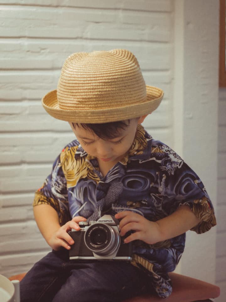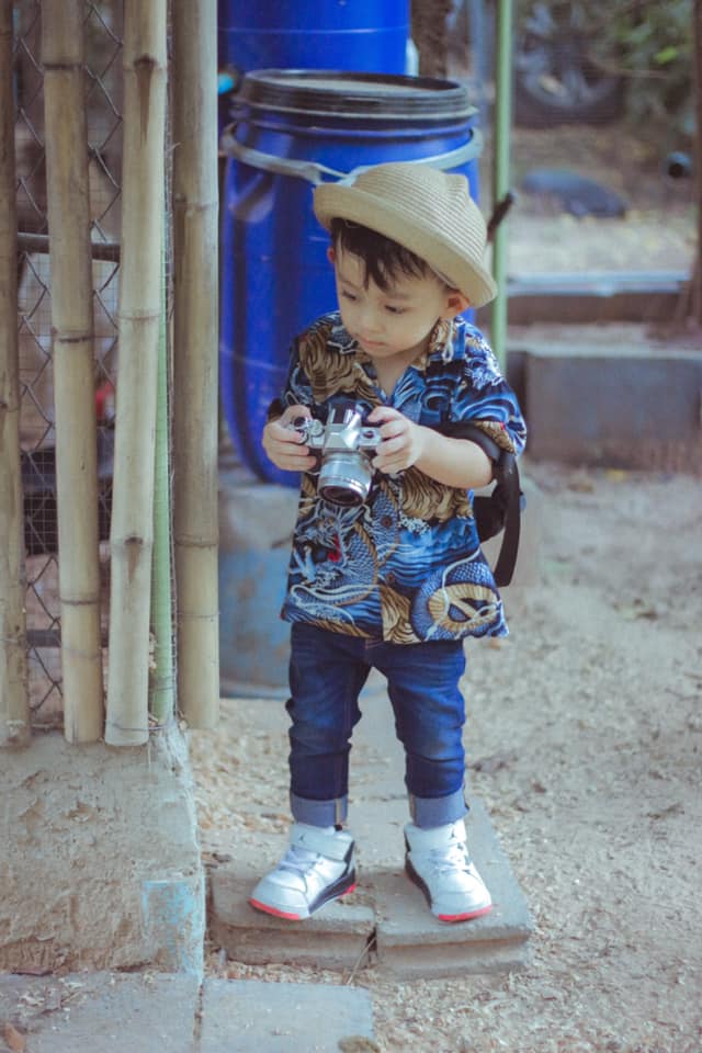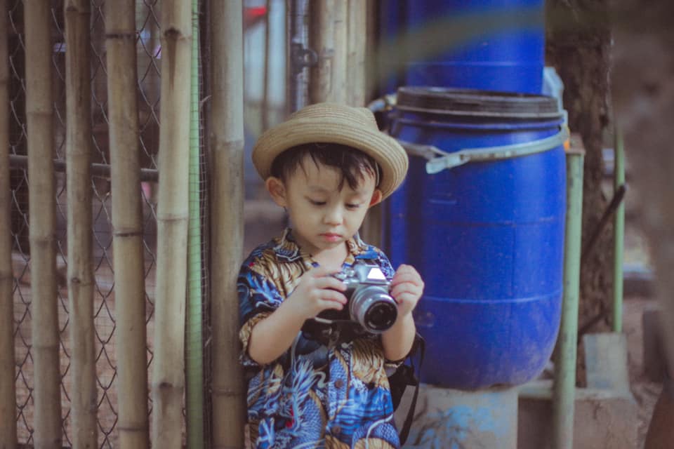 แล้วลูกชายก็หยิบกล้องไปบอกอยากถ่ายรูป ก็เลยสอนให้นิดหน่อย