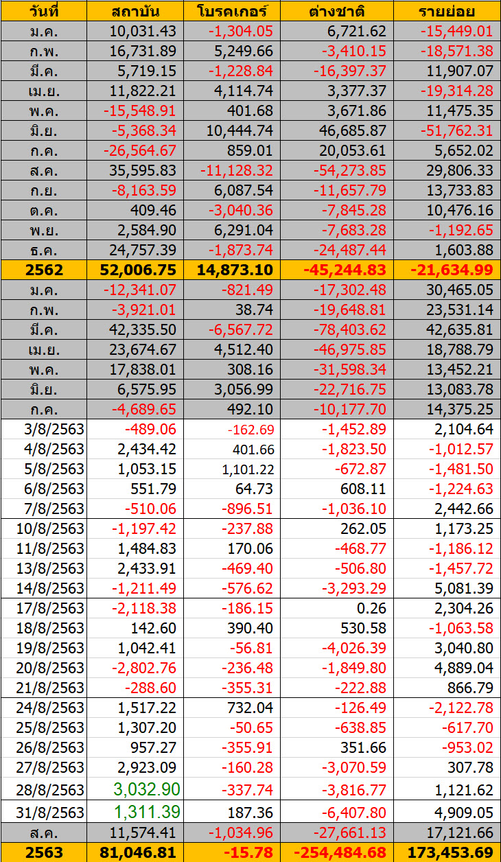 Sinthorn Summary 31/7/2563 : ต่างชาติขายสุทธิ -6,407.80 ลบ.