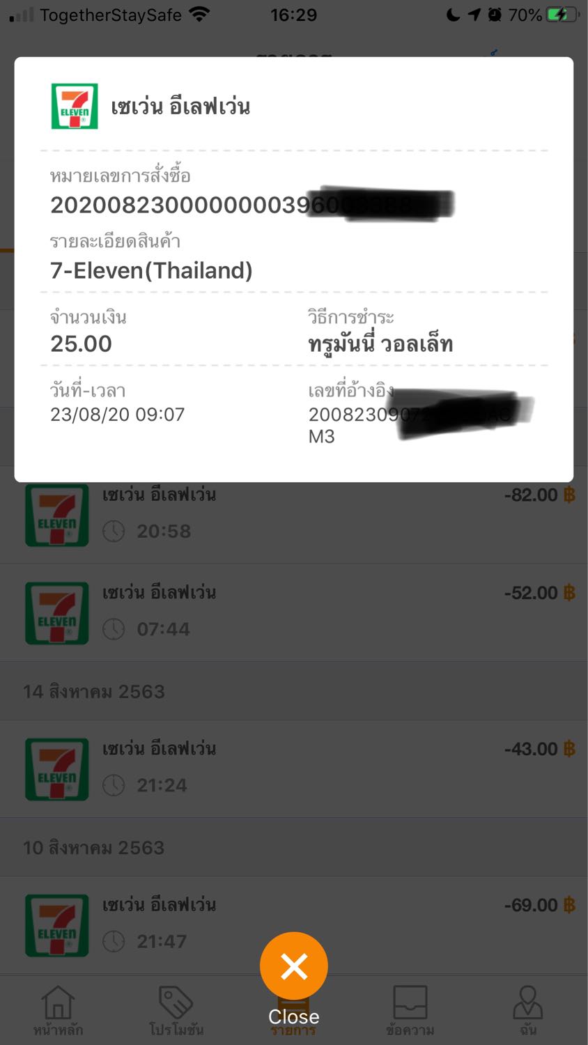 True money แจ้งเตือนจ่ายเงินไม่สำเร็จ