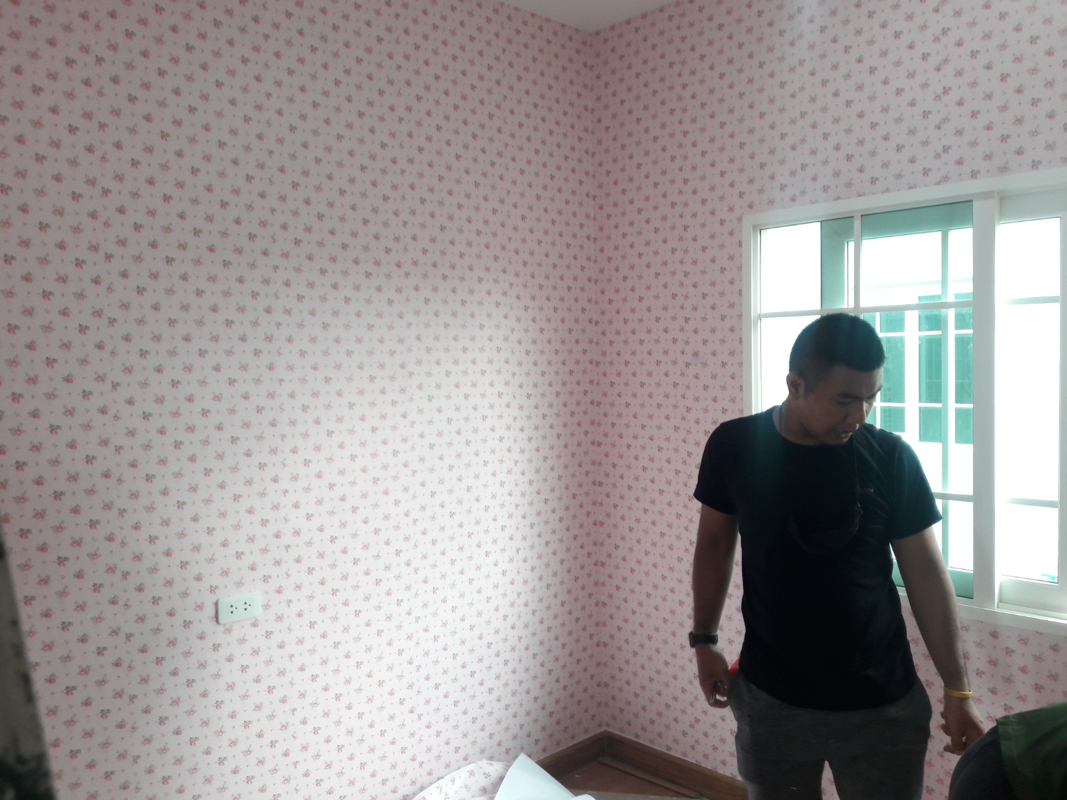 หลังจากนั้นก็ถึงเวลาติดตั้งวอลเปเปอร์กันค่ะ เราให้คนที่พ่อรู้จักได้ทำการติดวอลเปเปอร์ทั้งหลัง โดยใช้ระยะเวลาในการติดตั้งประมาณ 1-2 วัน ซึ่งเราได้สั่งไป 8 ม้วน