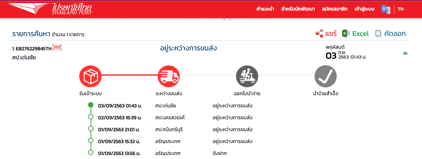 จะได้รับของเมื่อไหร่คะ เลข EMS: EB276229845TH เห็นวิ่งไปถึง เด่นชัย เราอยู่ กรุงเทพฯ