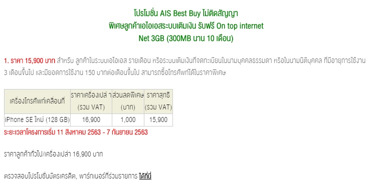AIS Store ครับ ขอถามระยะเวลาโปร iPhone SE 2020 เครื่องเปล่า มีเบอร์ AIS รายเดือน ครับ