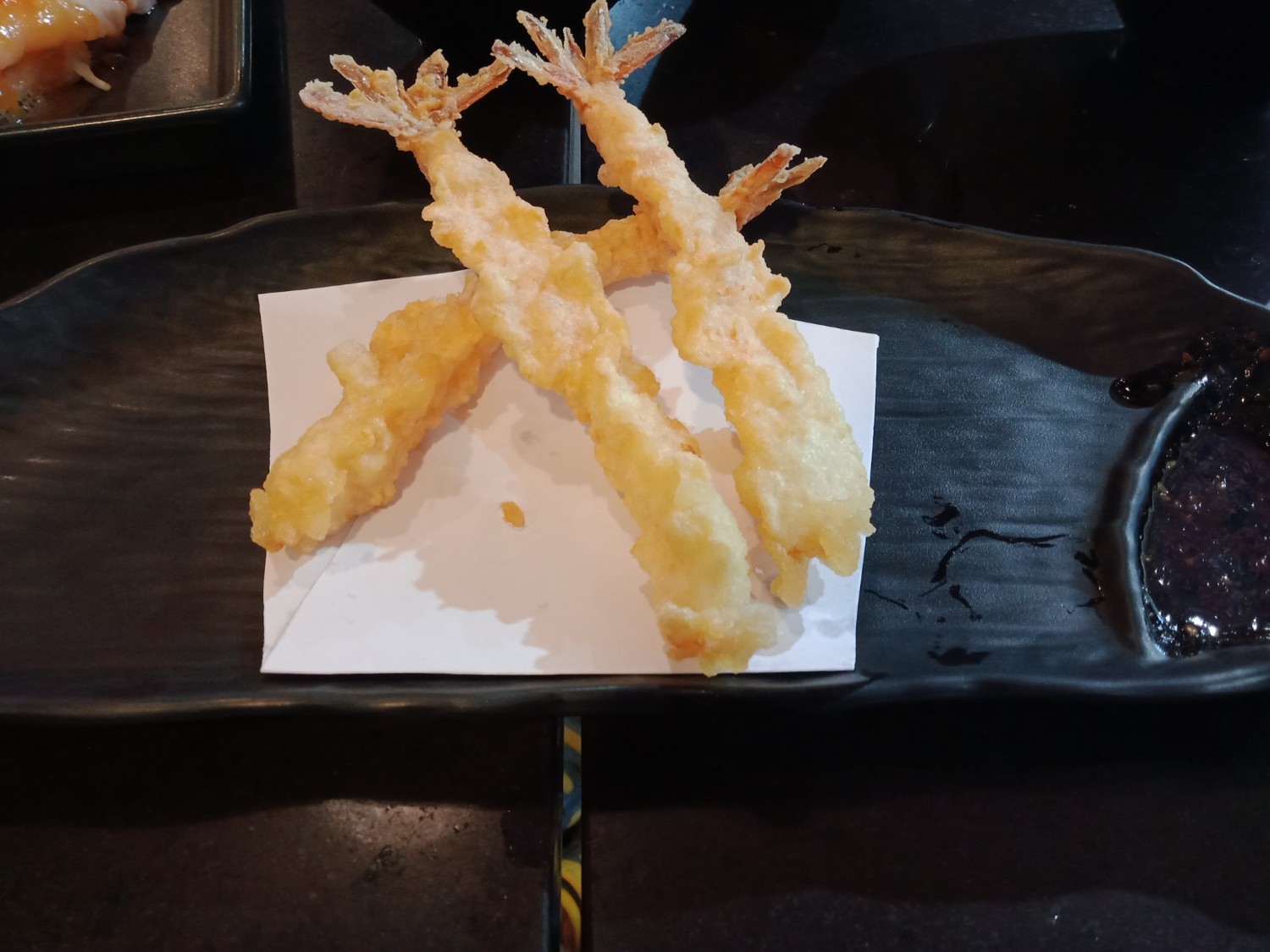 กุ้งดิบกินเยอะละ กินกุ้งทอดบ้าง แป้งทอดของที่นี่ใช้แป้งแบบที่ทำไก่คาราเกะ มันจะติดหนังกว่าแบบแป้งเทมปุระทั่วไป