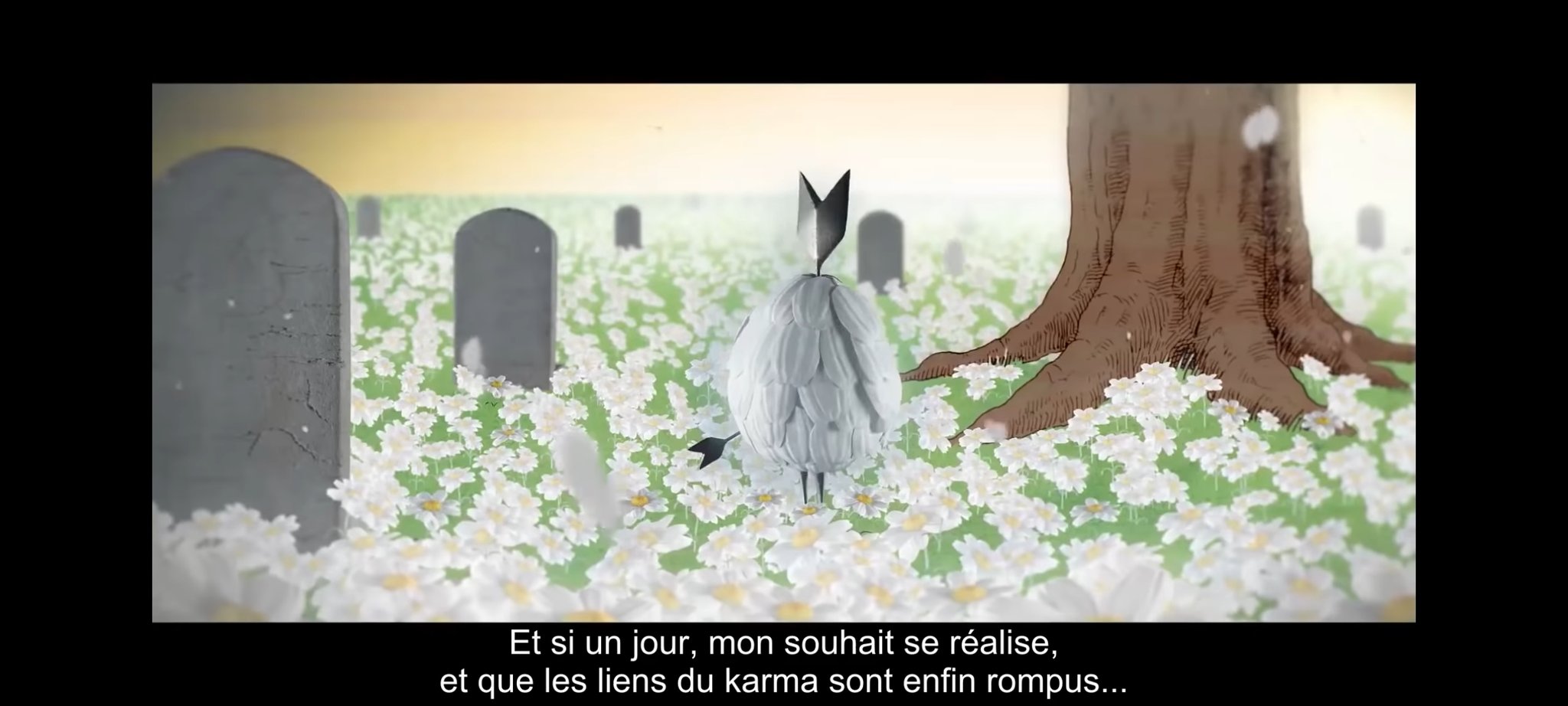 เหมือนนกตัวเล็ก น่าจะแทนเอเรนตอนเด็ก ที่ตัวโดนลูกศรยิง? ยืนอยู่ที่ต้นไม้คล้ายกับฉากในบทที่1 มีหลุมศพเต็มไปหมด??? งง