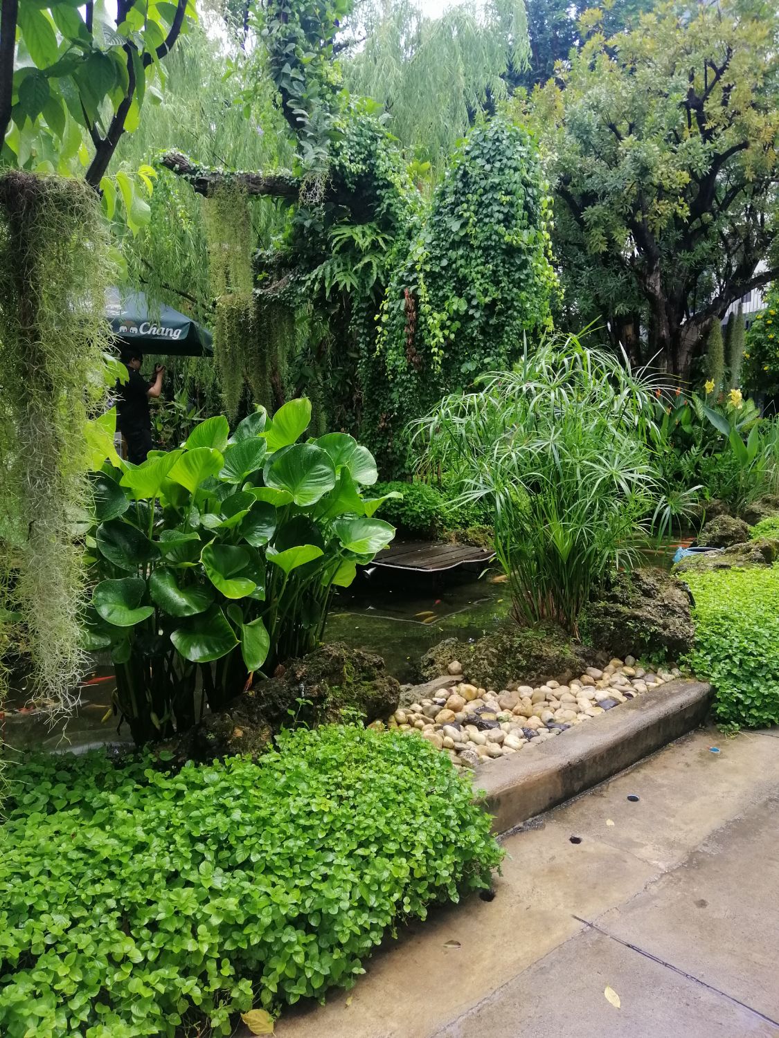 ทางเข้าร้านอาหารจะเป็นบ่อปลา และสวนน่ารักๆ ค่ะ ของจริงสวยกว่านี้ต้องไปชมด้วยตาตนเองนะคะ