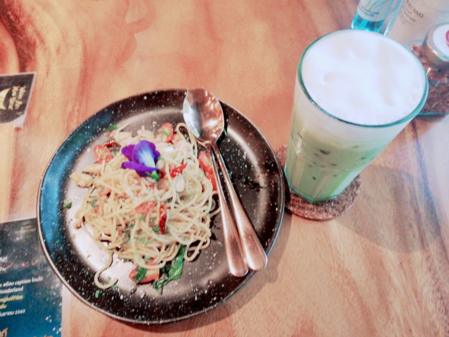 มาถึงอาหารบ้าง ไม่ได้ถ่ายเมนูมานะคะ วันนี้มากับเพื่อนอีกคนนึง เลยสั่งอาหารคนละอย่าง เครื่องดื่ม ตบท้ายด้วยเค้กสองชิ้น