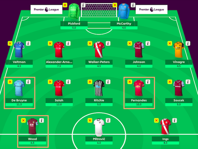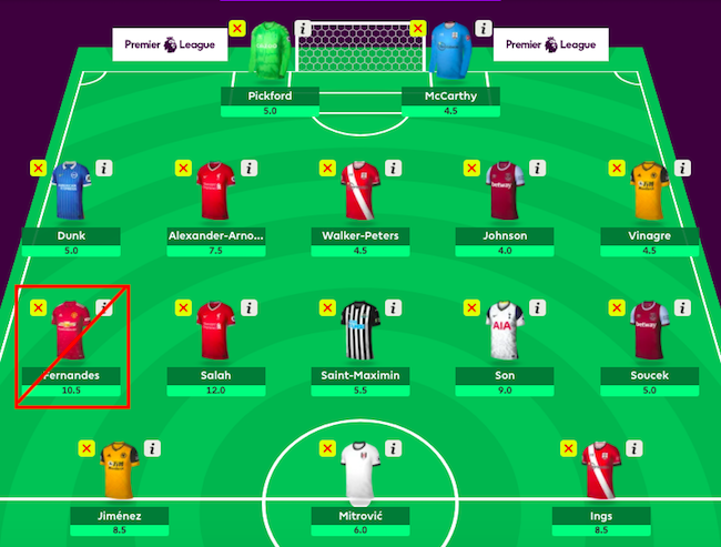 วิธีจัดการแรกแบบไม่ต้องคิดมาก คือการเลือกนักเตะที่เราอยากได้จาก 2 ทีมนี้ อยู่ในทีมตั้งแต่ต้น ข้อดีสำคัญคือการไม่ต้องไปกังวลกับราคาขึ้น-ลงของนักเตะหลังผ่านเดดไลน์ Gameweek 1 เพราะอย่าลืมว่า แค่การปรับเพียง 0.1 อาจจะทำให้คุณพลาดเป้าหมายที่ต้องการได้ หากไม่มีงบสแปร์ไว้