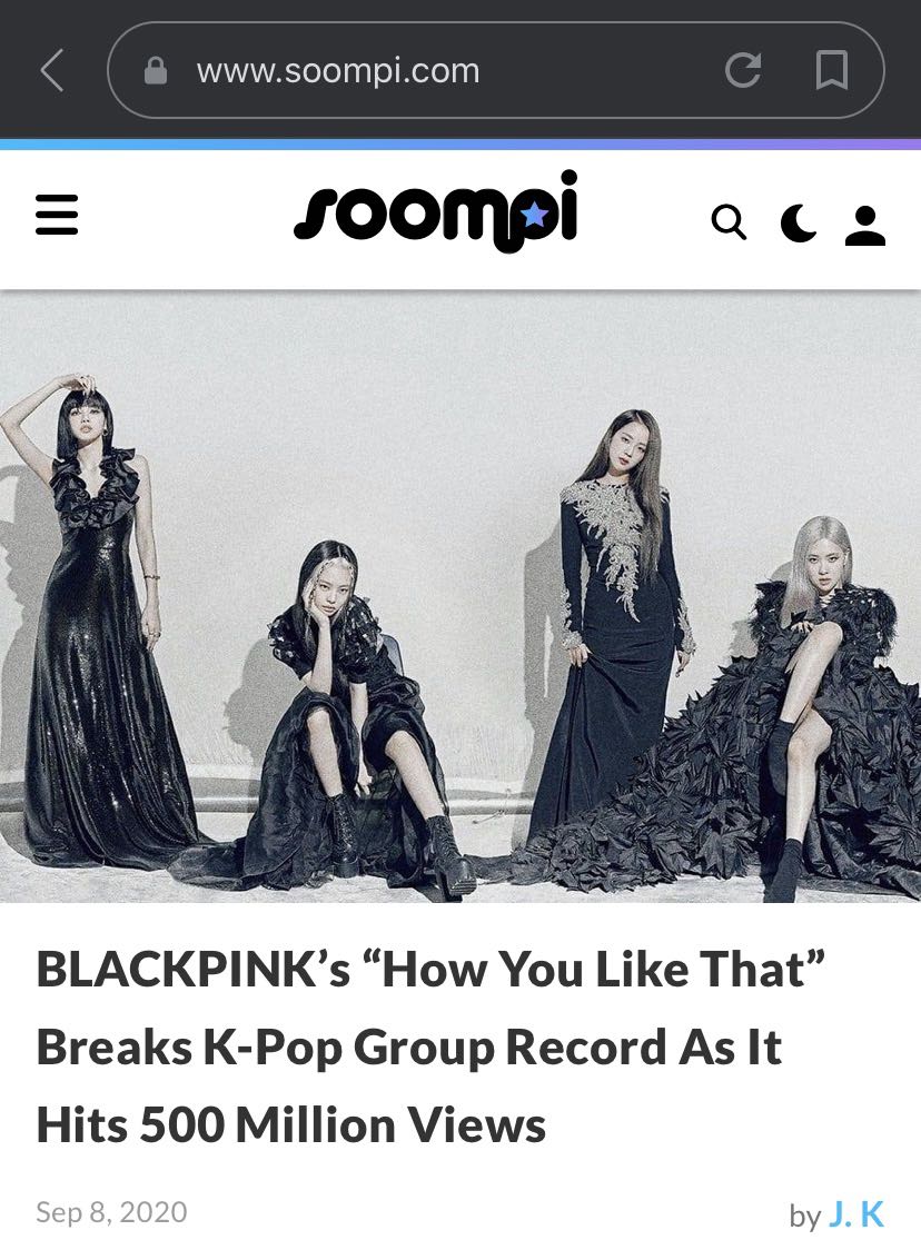 How You Like That กลายเป็นเพลงจาก KPOP Group ในประวัติศาสตร์ที่ได้ 500 Millions View บน Platform Youtube เร็วที่สุด ภายใน 2 เดือน กับ 12 วัน