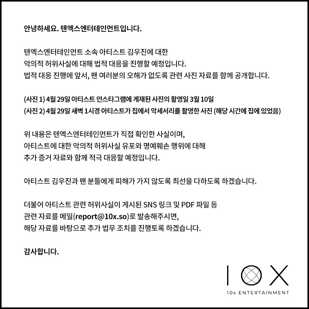 [K-POP] ค่ายของ อูจิน ออกมาแถลงเกี่ยวกับเรื่องราวที่เกิดขึ้น