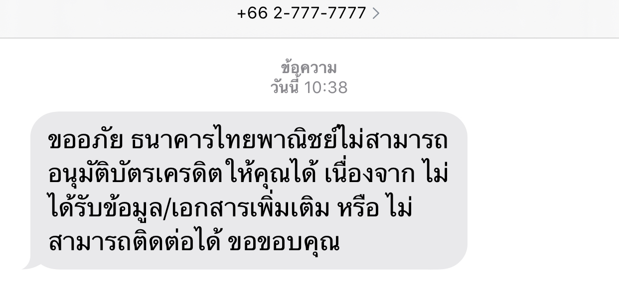 ถามเกี่ยวกับผลอนุมัติบัตร scb ผ่านsms