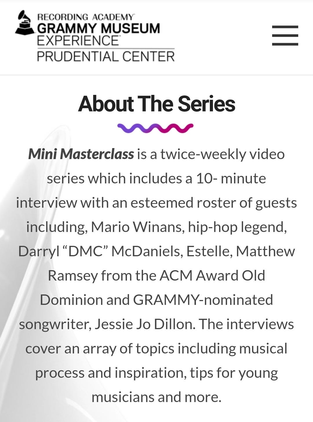 Mini Masterclass เป็นซีรี่ส์บทสัมภาษณ์คนดังในวงการเพลงความยาวประมาณ 10 นาที ออกทุกวันอังคาร/ศุกร์ทาง YouTube ชาแนล Prudential Center หัวข้อครอบคลุมด้านขั้นตอนและแรงบันดาลใจในการทำเพลง, คำแนะนำแก่ศิลปินรุ่นใหม่ ฯลฯ