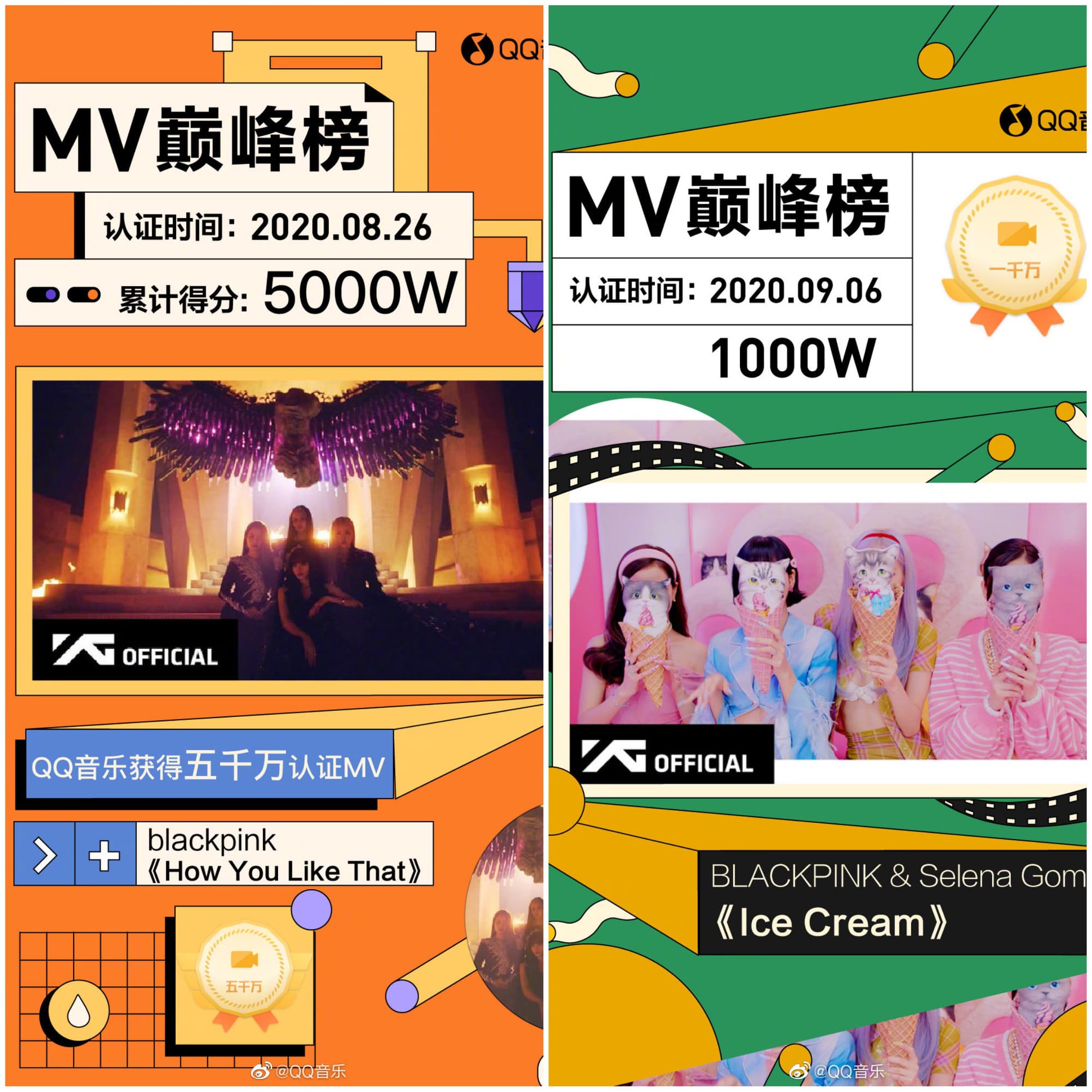 ปัจจุบัน MV 'How You Like That' และ 'Ice Cream' ยังได้รับ Certified Tier จาก QQ Music ทั้ง 2 MV