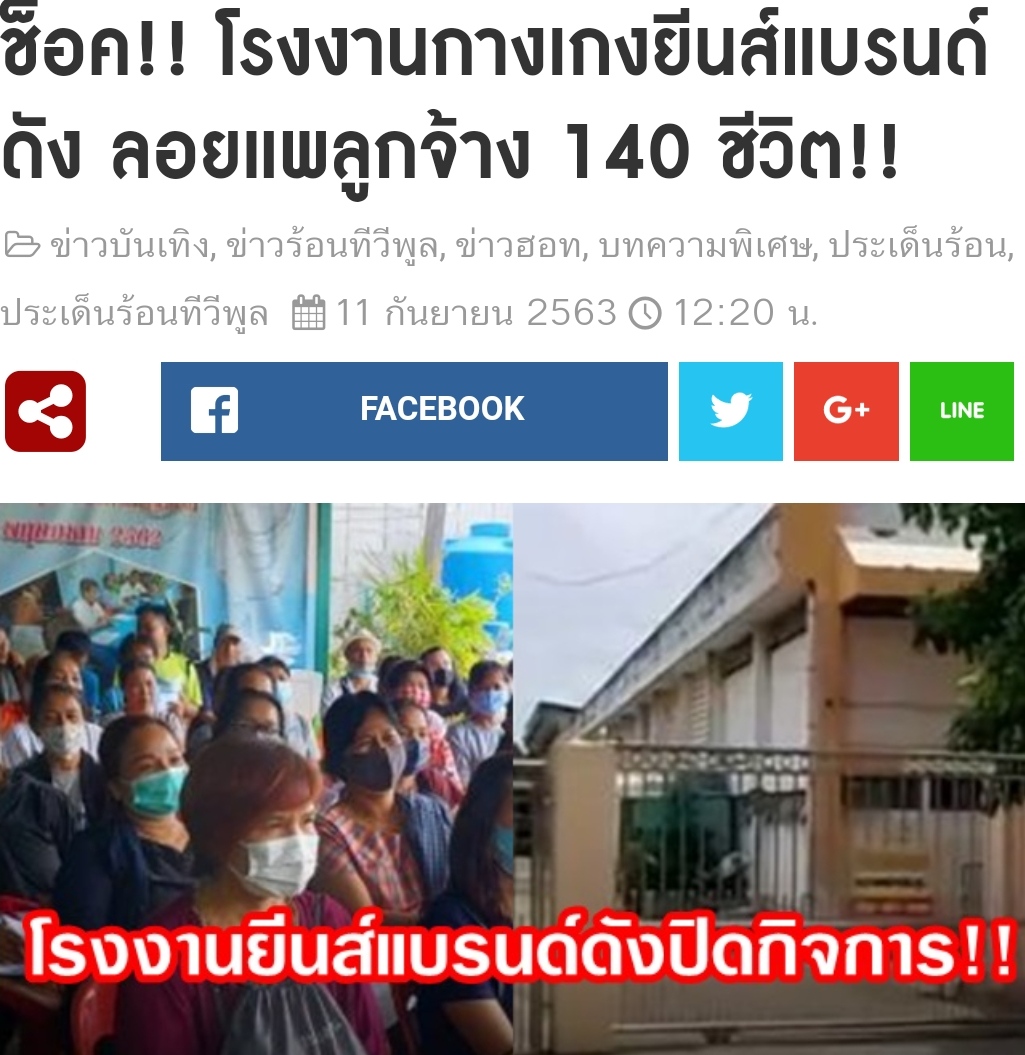 ช็อค!! โรงงานกางเกงยีนส์แบรนด์ดัง ลอยแพลูกจ้าง 140 ชีวิต!!