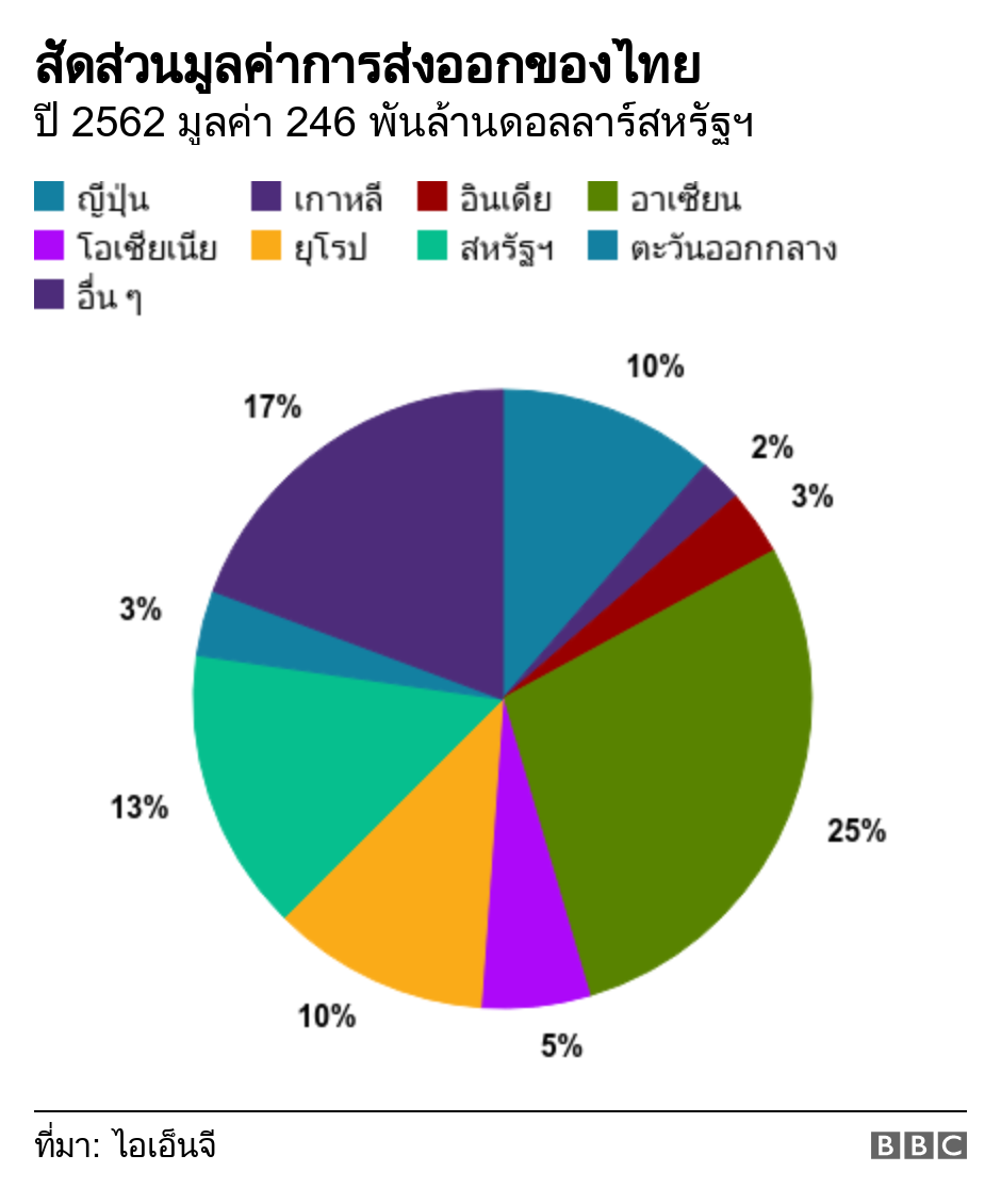 ตลาดการส่งออกที่สำคัญของไทยทั้งสหรัฐฯ, ยุโรป, ญี่ปุ่น และอาเซียน (รวมกันคิดเป็นกว่าครึ่งหนึ่งของมูลค่าการส่งออกของไทย) ยังคงได้รับผลกระทบจากปัญหาโควิด-19 นอกจากนี้ยังมีปัจจัยภายในประเทศหลายอย่างเช่น ปัญหาภัยแล้งทั่วประเทศ ที่อาจทำให้ผลผลิตด้านการเกษตรและการส่งออกลดลง โดยขณะนี้การส่งออกข้าวของไทยในช่วง 7 เดือนแรกของปีนี้ ลดลง 14% เมื่อเทียบกับช่วงเวลาเดียวกันของปีก่อน โดยสมาคมผู้ส่งออกข้าวไทยได้รับลดเป้าหมายการส่งออกข้าวลง 13% ในปีนี้เหลือ 6.5 ล้านตัน ต่ำที่สุดในรอบ 20 ปี ซึ่งหากเป็นเช่นนั้นจริง ไทยอาจจะเสียตำแหน่งผู้ส่งออกข้าวมากเป็นอันดับสองของโลก
