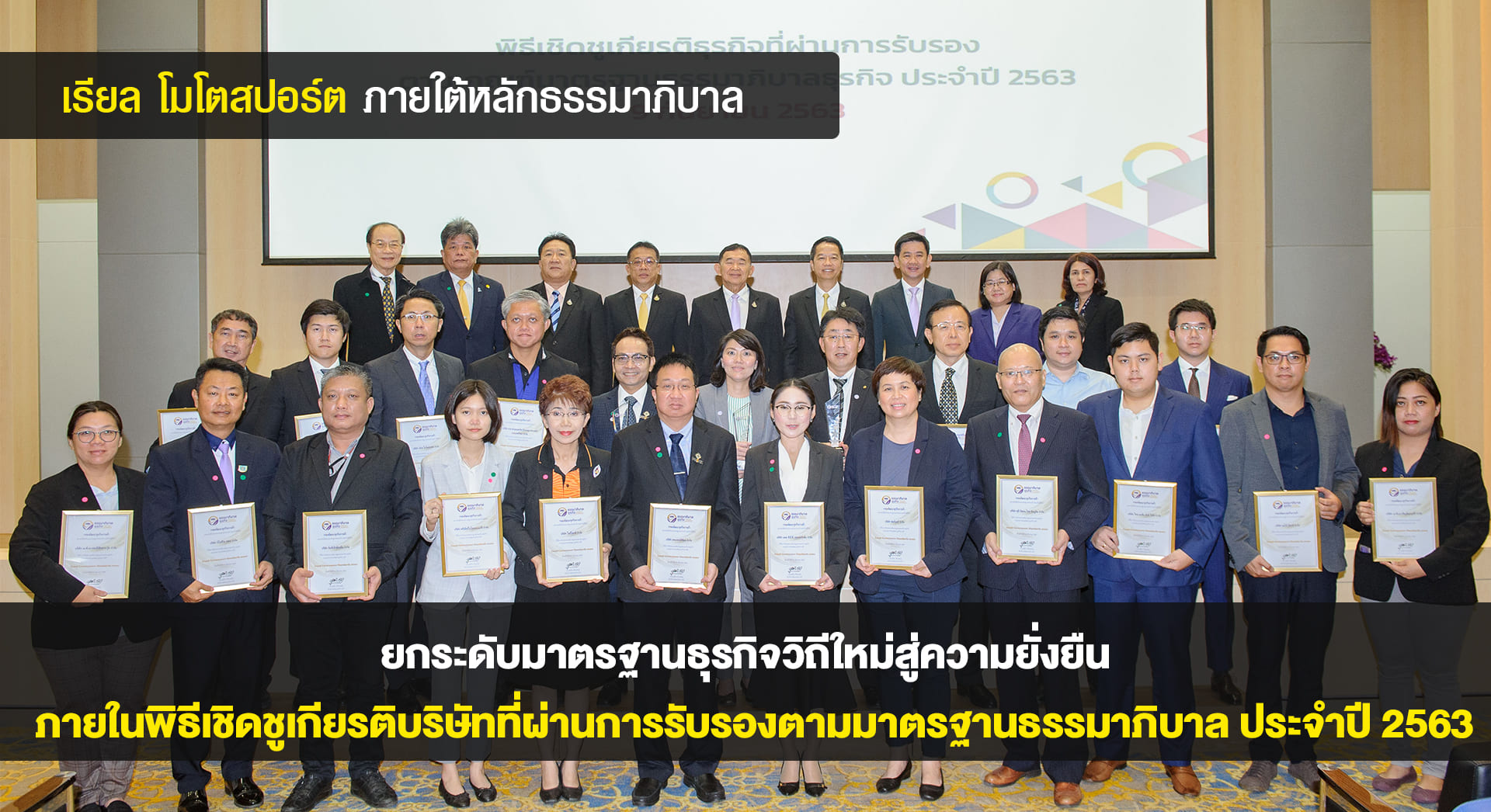 บริษัท เรียล โมโตสปอร์ต จํากัด ได้รับรองเกณฑ์มาตรฐานธรรมาภิบาลธุรกิจขนาดใหญ่ ประจำปี พ.ศ. 2563 จัดโดย กรมพัฒนาธุรกิจการค้า กระทรวงพาณิชย์