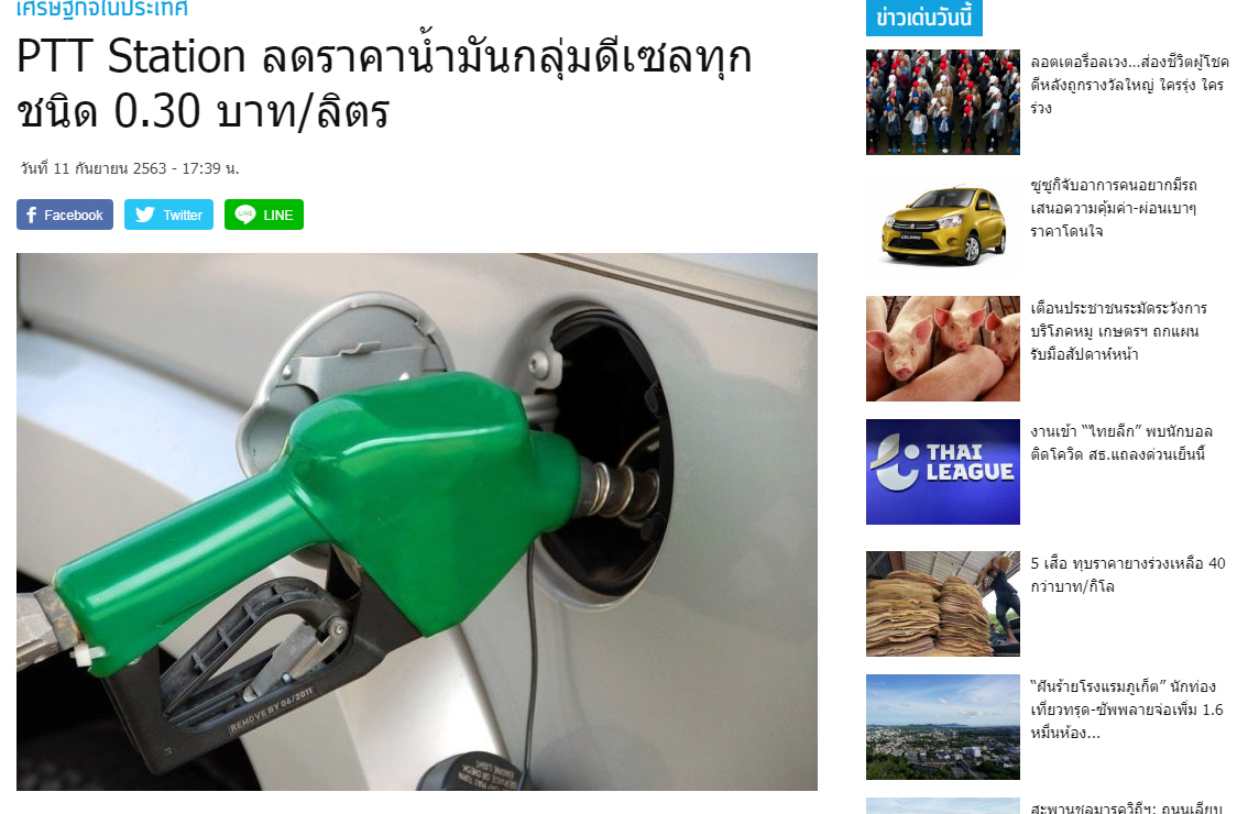 ปตท.ลดราคาน้ำมันทุกประเภท 30-50 สตางค์/ลิตร มีผลพรุ่งนี้