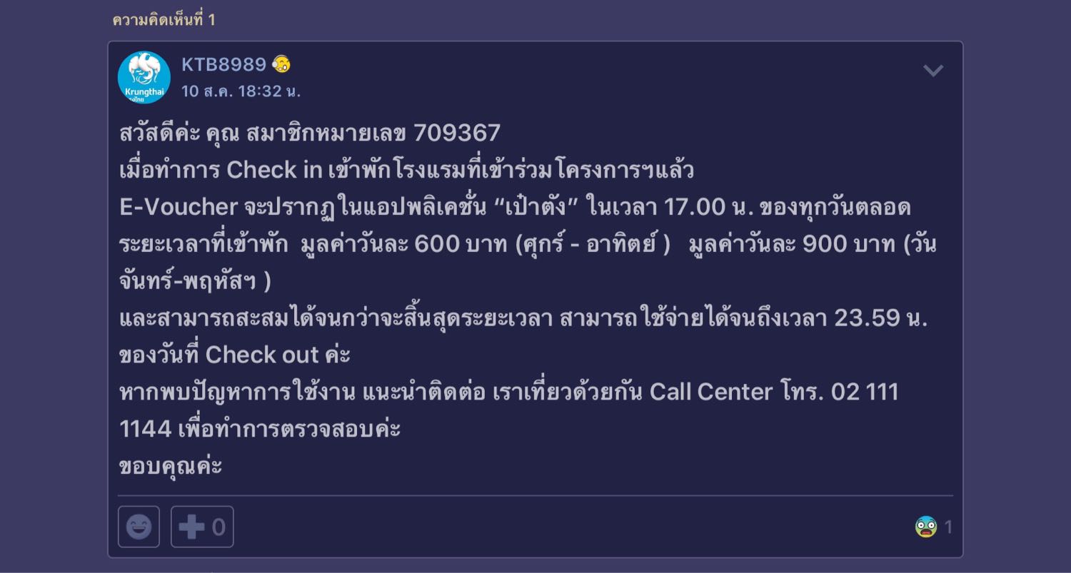 >>> โครงการนี้ เงินเที่ยว+กิน เงินส่วนลดจะเข้าตั้งแต่ 17.00 -23.59 เหรอคะ