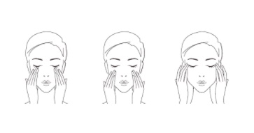 แตะผลิตภัณฑ์เป็นจุดๆ ลงบนผิวใต้ตา และใช้ปลายนิ้วแตะลากเบาๆไปตามผิวรอบดวงตา โดยเริ่มจากหัวตาขึ้นไปที่ขมับ