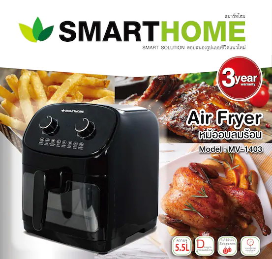 หม้อทอดไร้น้ำมัน Smart Home MV-1403 ความจุหม้อ 5.5 ลิตร รับประกัน 3 ปี 3,xxx ต้นๆนิดๆ มีใครเคยใช้บ้างดีไหมครับ