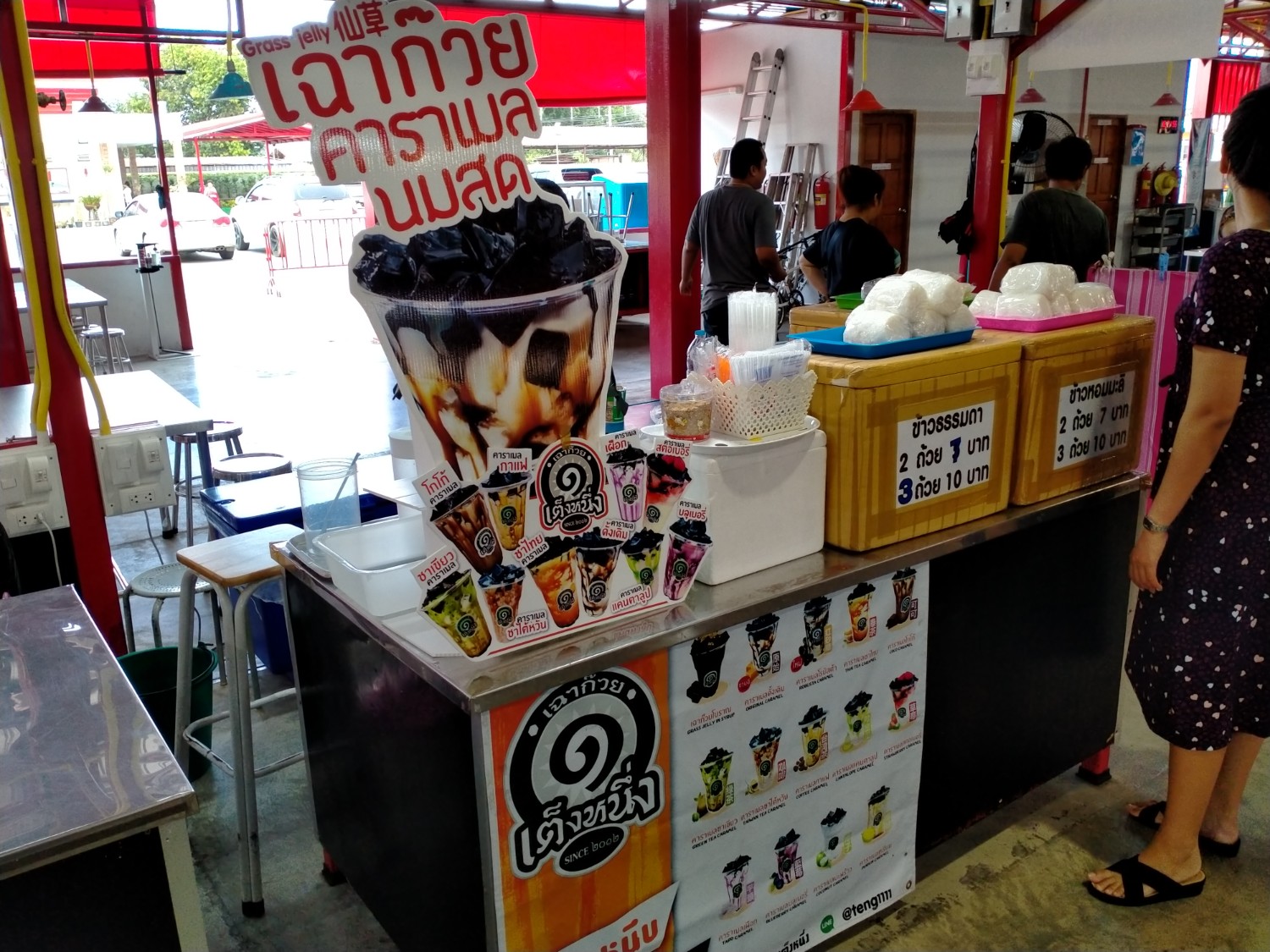 ร้านจะอยู่ถัดจากจุดเล่นเกมรับรางวัลไปอีก 2 ล็อกครับ ร้านจะมีผักโขม มักกะโรนี และมันบดอบชีสด้วย
