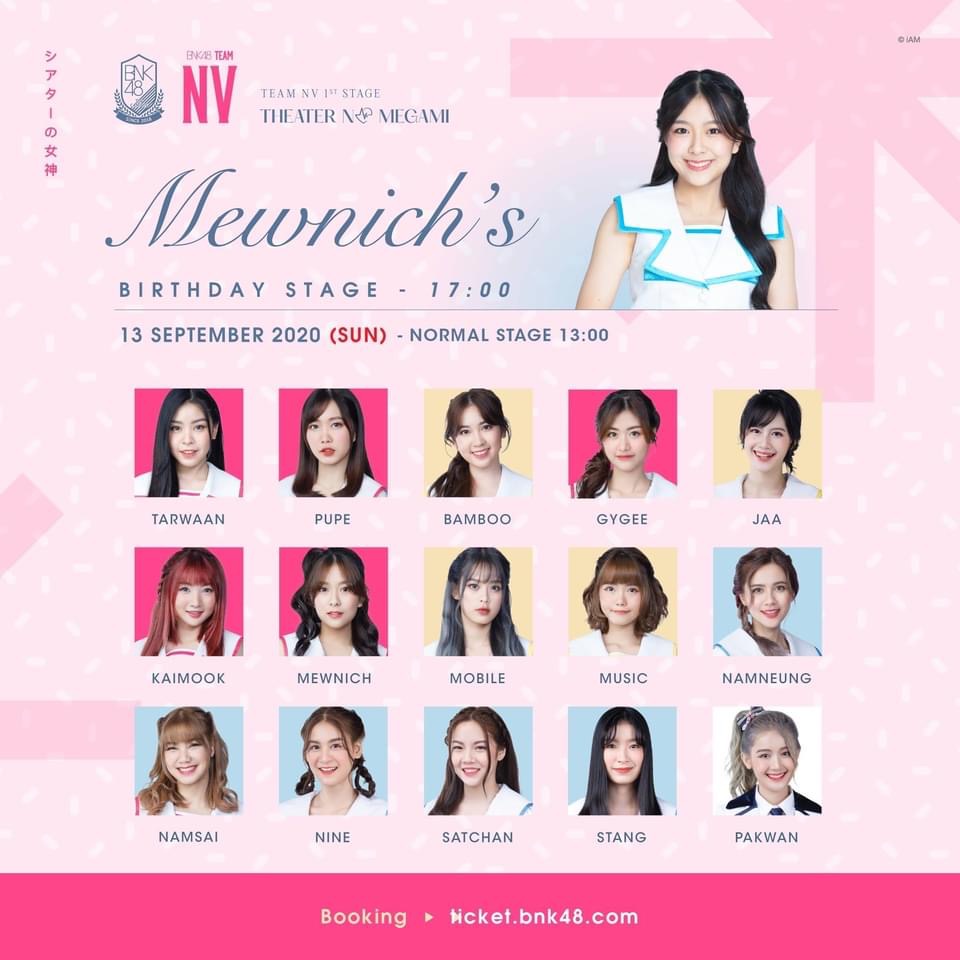 หลังจากเลื่อนมานาน รอเพื่อนๆครบทีม ===================== ประกาศเรื่องรายละเอียดการชดเชย การแสดง BNK48 Team NV 1st Stage "Theater no Megami" Mo