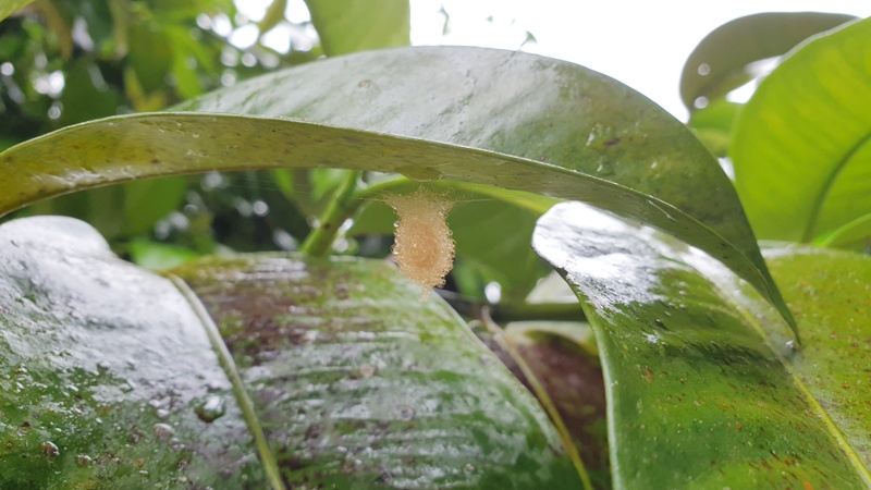 เจอไข่แมลงห้อยเป็นถุงสีเหลือง มันคือไข่หรือดักแด้ของแมลงอะไรครับ
