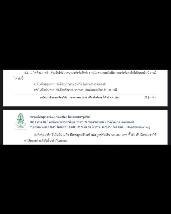ไฟดับถ้าแก้ไขไม่ได้ใน 60 นาทีจะถูกปรับแพ้ 0 ต่อ 2