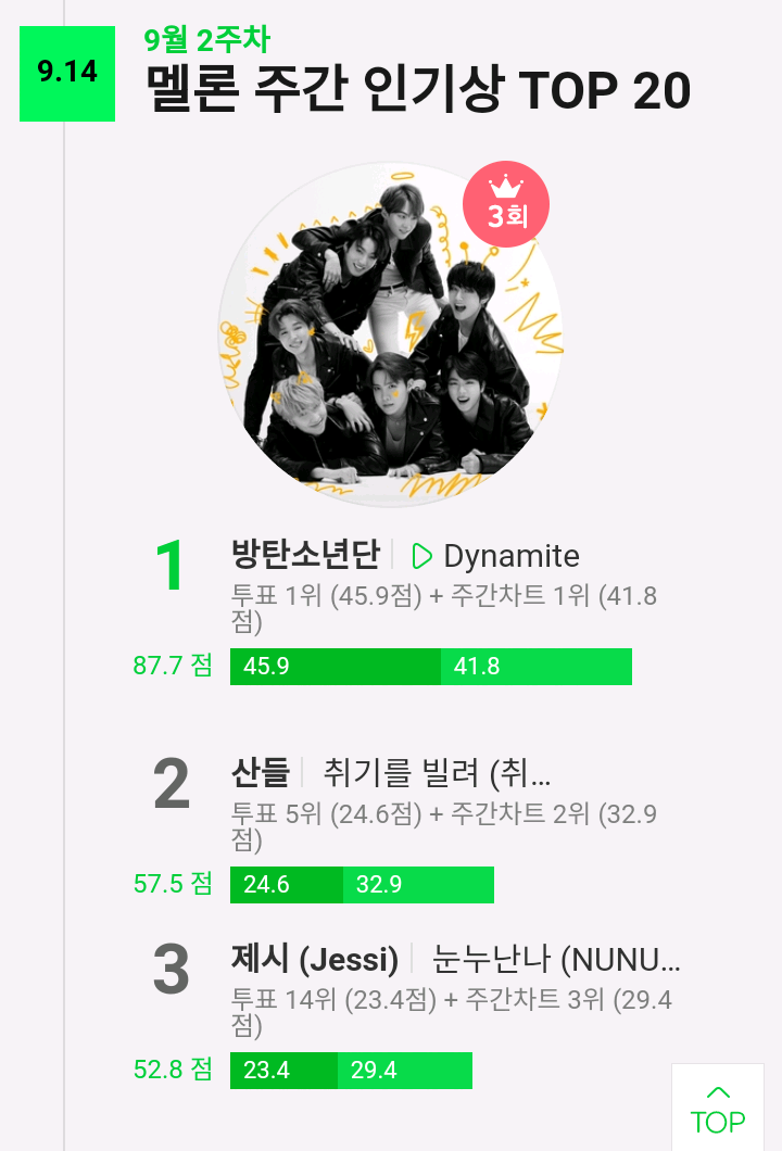 👑 BTS - DYNAMITE 👑 ชนะ MelOn Popularity Award 3 สัปดาห์ติดต่อกัน (still counting)