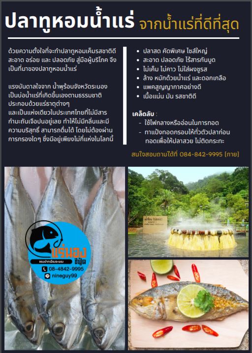 ปลาทูหอมน้ำแร่ เป็นปลาทูสดคัดพิเศษผ่านกระบวนการล้างและหมักด้วยน้ำแร่จากบ่อน้ำพุร้อนจากจังหวัดระนอง ด้วยความตั้งใจของผู้ผลิตที่จะทำปลาทูหอมเค็มที่สะอาด อร่อย และ ปลอดภัยที่สุด สู่มือผู้บริโภค