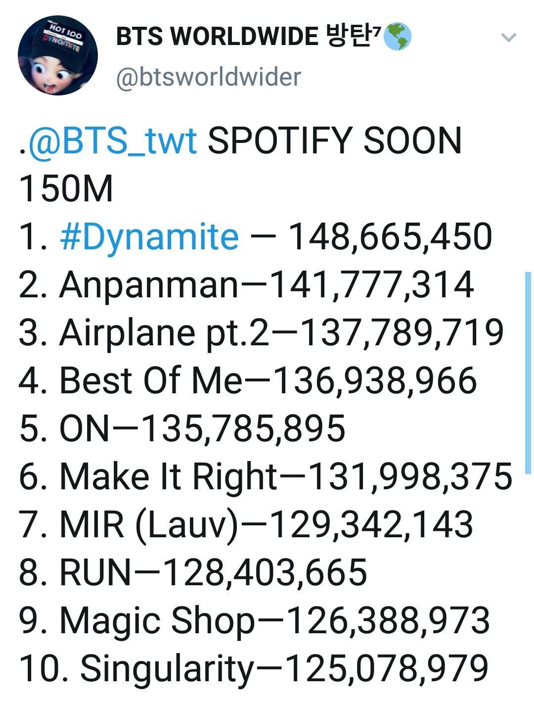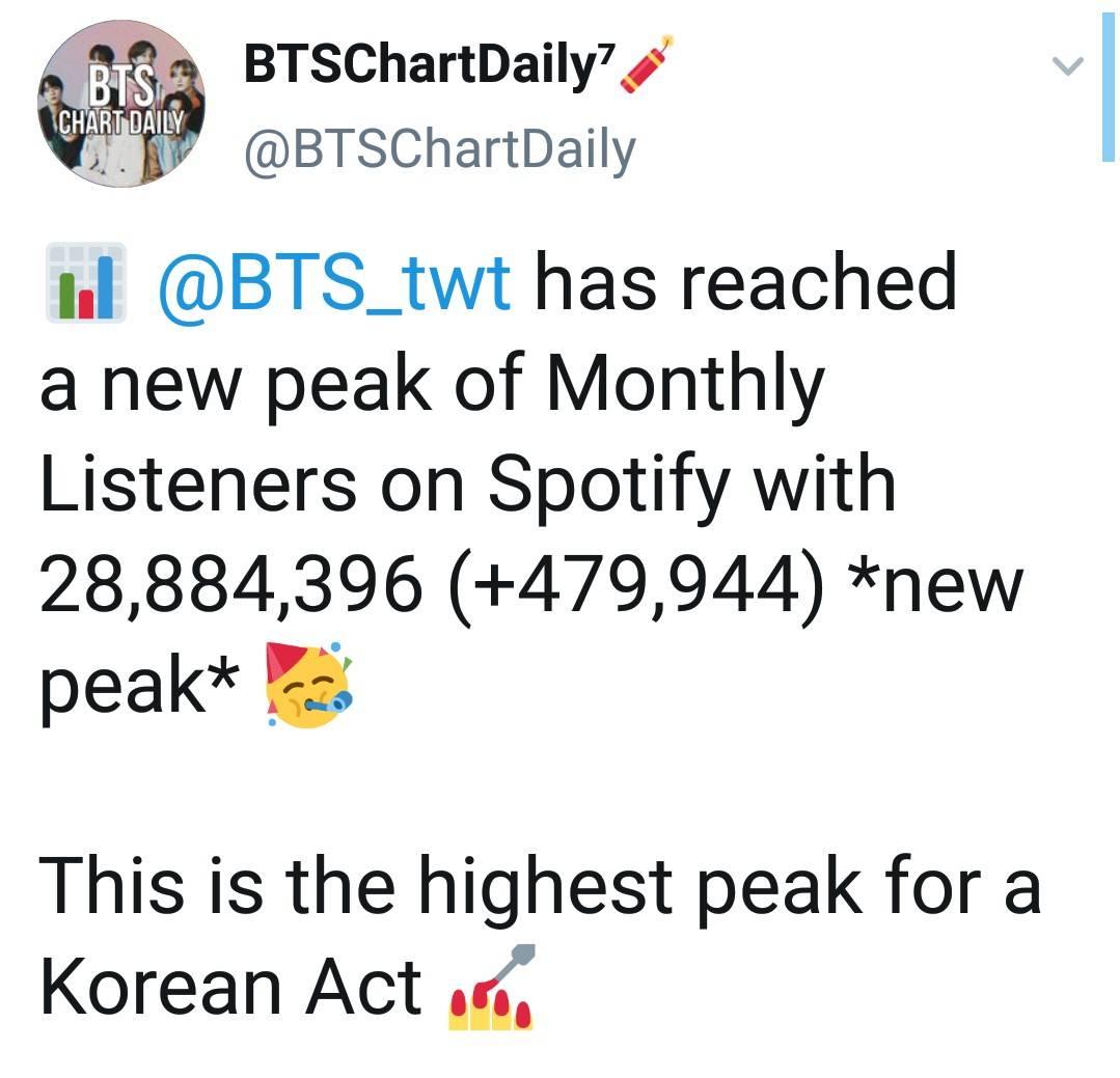 7 หนุ่มวง BTS ทำลายสถิติกลายเป็นศิลปินเกาหลีกลุ่มแรกที่มียอดผู้ฟังรายเดือนบน Spotifyถึง 28.88 ล้านคน เป็นยอดสูงสุดของศิลปินเกาหลีที่ทำได้อีกด้วย 🔥