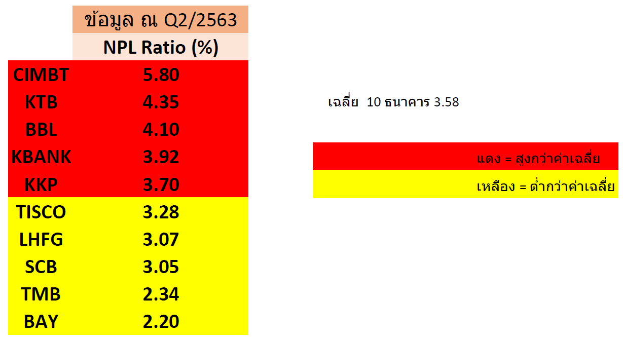 NPL - NPL Ratio - Coverage Ratio ของ BBL KBANK SCB KTB TMB BAY Q2/2563 ** update เพิ่ม KKP **