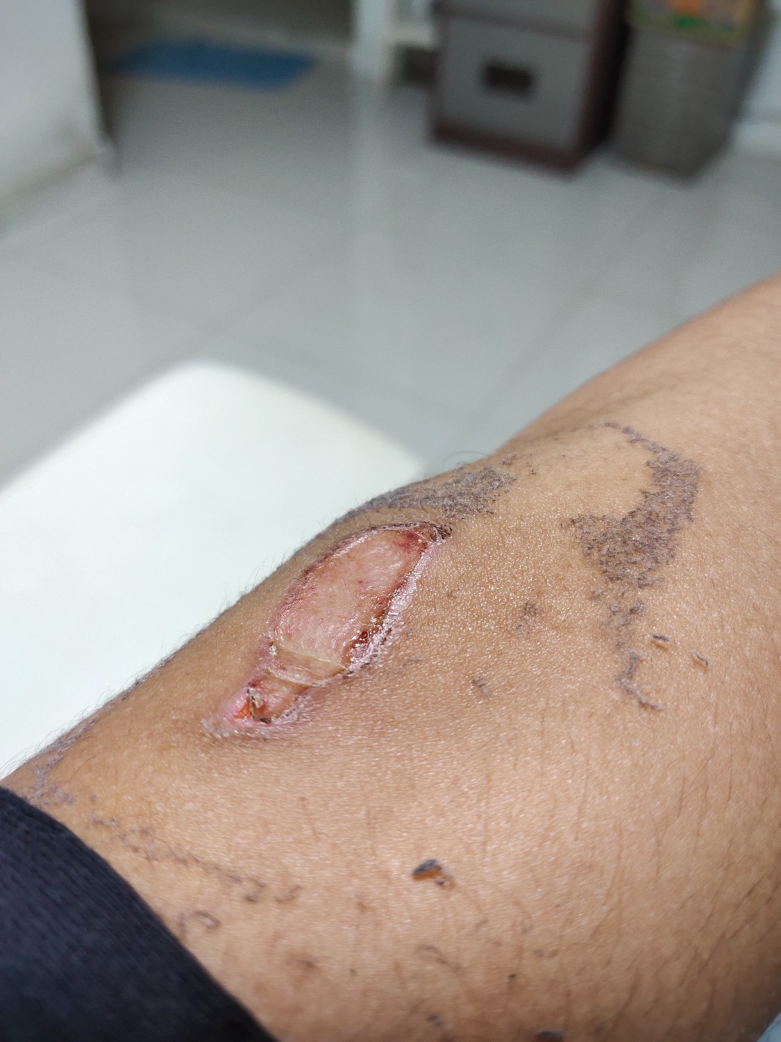 ผมเกิดอุบัติเหตุแล้วทำให้เกิดแผลถลอก ผ่านไปซักพักแผลแห้งแต่ไม่ตกเสก็ดแบบนี้ปรกติรึเปล่าครับ