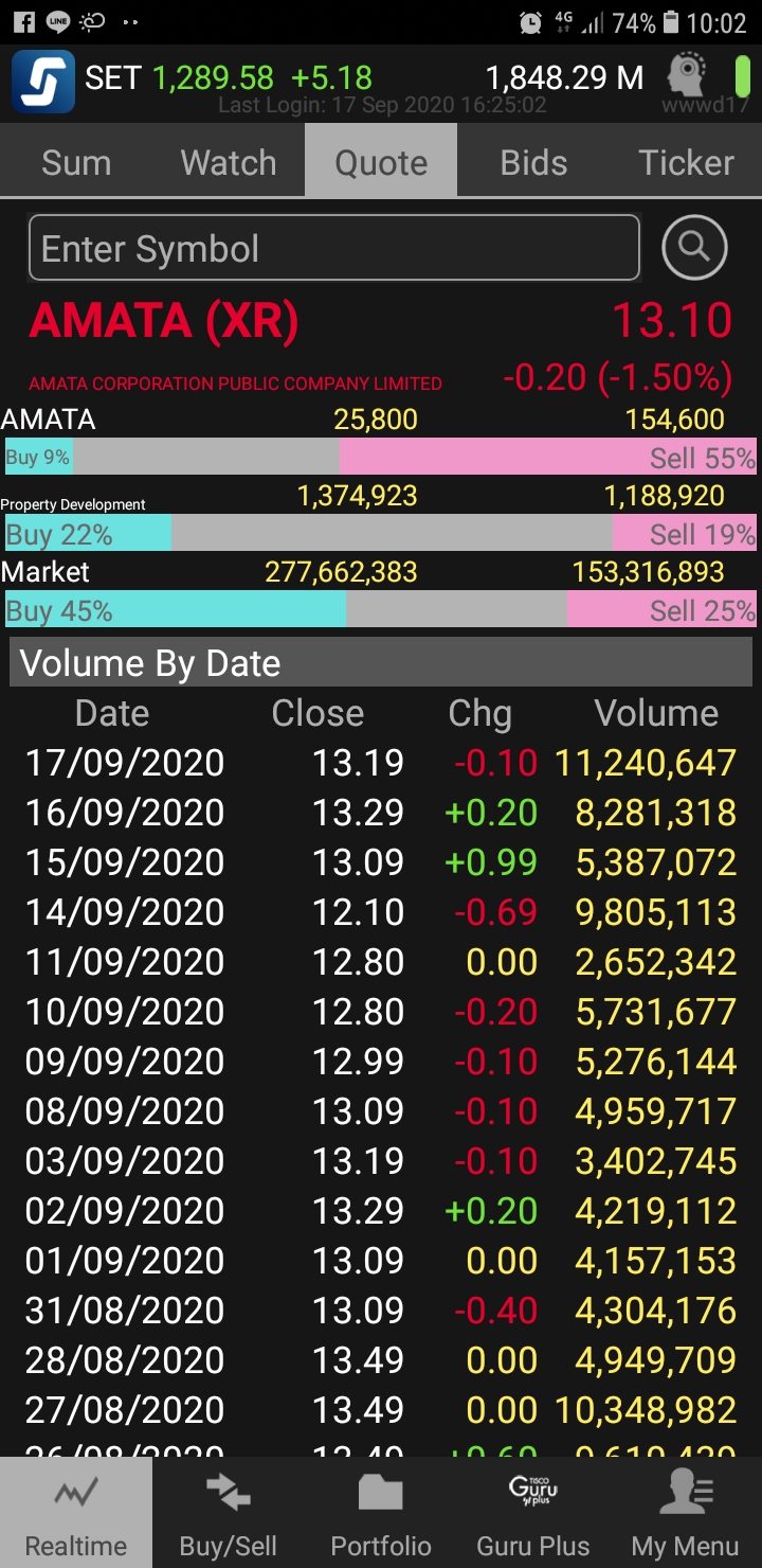 ปัจจุบัน Advanc ทุน 228.54 จำนวน2600 ตลาด 223 Amata ทุน 16.13 จำนวน28100 ตลาด 15.8 Bmcl ทุน1.05 จำนวน235300 ตลาด1.05 Kmc ทุน0.44 จำนวน630300 ตลาด0.40 Lhbank ทุน1.32 จำนวน224800 ตลาด 1.29 ลบ 57733 (2.