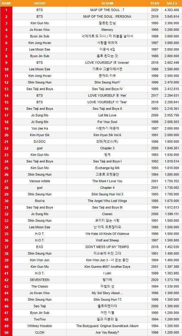 [K-POP] 100 อันดับ อัลบั้มที่ขายดีที่สุดตลอดกาลในเกาหลีใต้