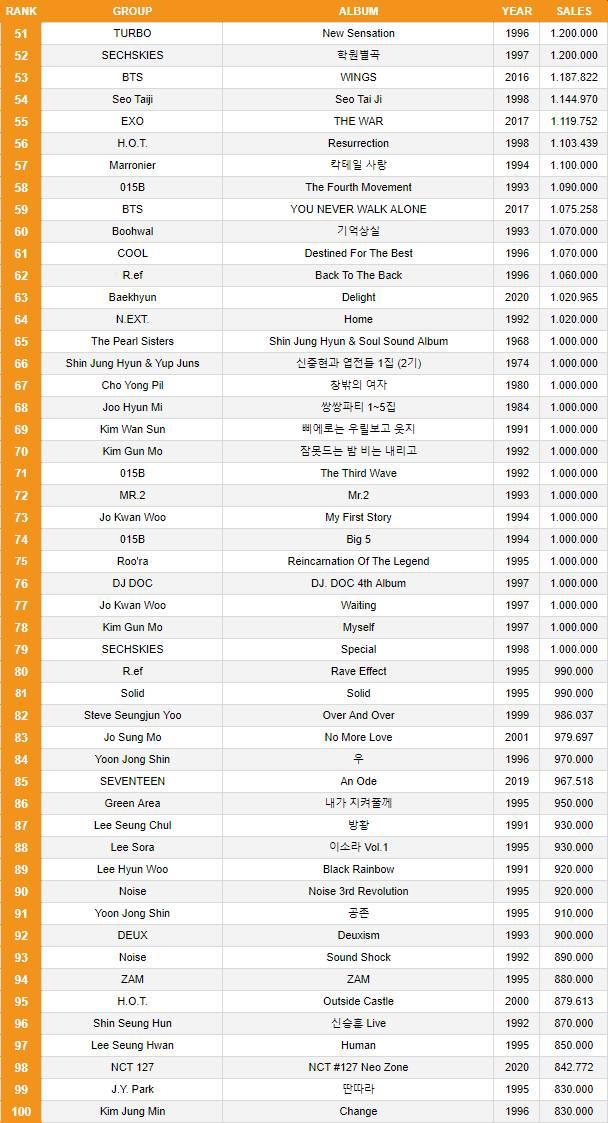 100 อันดับ อัลบั้มที่ขายดีที่สุดตลอดกาลในเกาหลีใต้