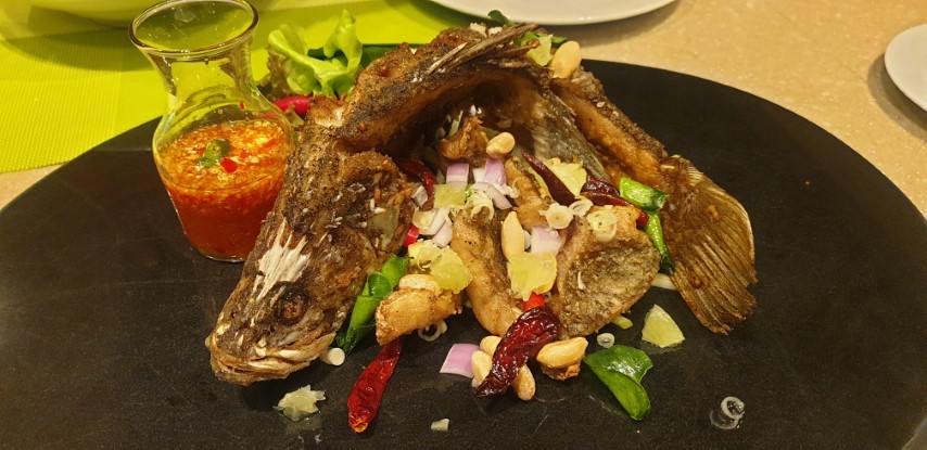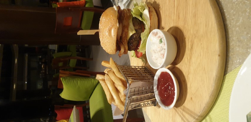 เนื่องจากเรามีเครดิตที่โรงแรม มื้อเย็นของวันแรกเราเลยทานในโรงแรมค่ะ มีเมนูเบอร์เกอร์วากิว ปลากระพงทรงเครื่อง และซีซาร์สลัด รสชาติโอเคตามมาตรฐานค่ะ (แต่พอดีเราเจอปัญหาในเครื่องเคียงเบอร์เกอร์นิดนึง รร เลยไม่คิดเงินในเมนูนี้) ทั้งสามเมนูบวกน้ำ 1 ขวด อยู่ที่ประมาณ 900 กว่าบาท อยู่ในเครดิตโรงแรมพอดีค่ะ