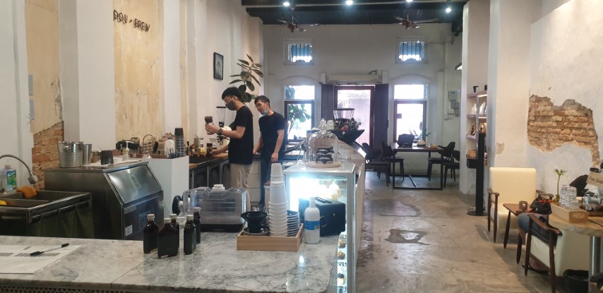 วันกลับพบว่าคูปองเหลือเยอะเลย เพราะเรามาวันธรรมดา ได้ตั้งวันละ 900 บาท เช้าวันกลับแวะมาทานกาแฟในเมืองเช่นเคย ร้าน Dou-Brew Coffee ร้านน่ารักอีกแล้ว รักความคลาสสิคของภูเก็ตมาก
