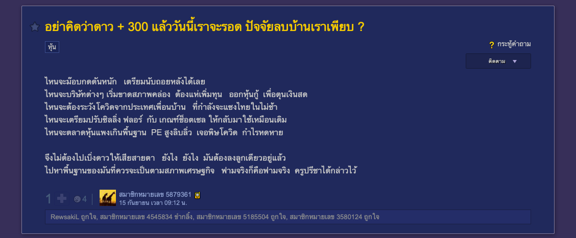 แหม วันก่อนบอก SET ไม่อิงดาว พอดาวร่วง มาเคลมว่าวันจันทร์แดงยับๆ เซียนคอยาวยังไงครับเนี่ยยยยย