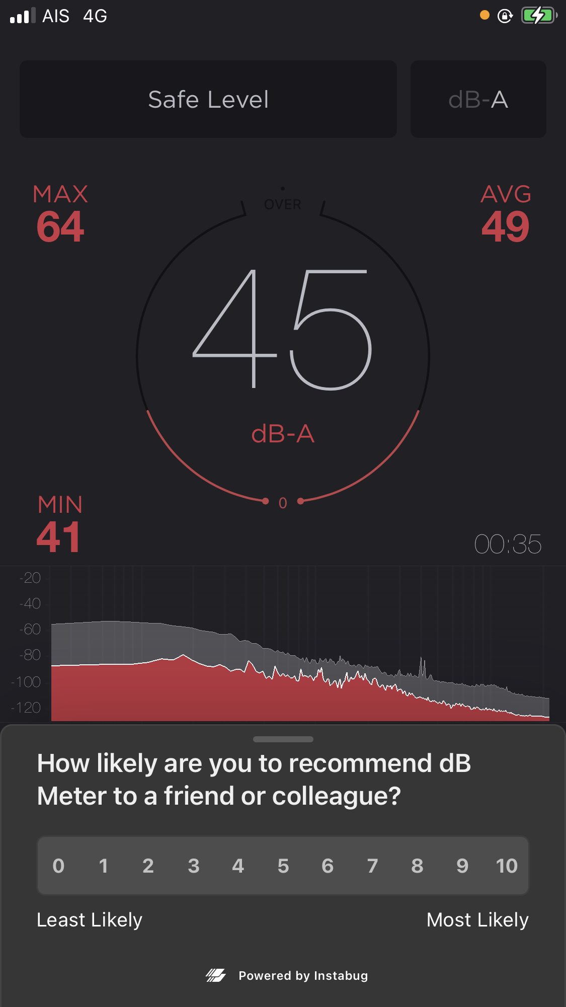 รูปแรกเป็นรูปที่ผมลองใช้แอพในไอโฟนวัดระดับเสียงดังดู นี่คือระดับความดังในขณะที่ผมอยู่กลางบ้าน เสียงทีวี+เสียงคนคุย