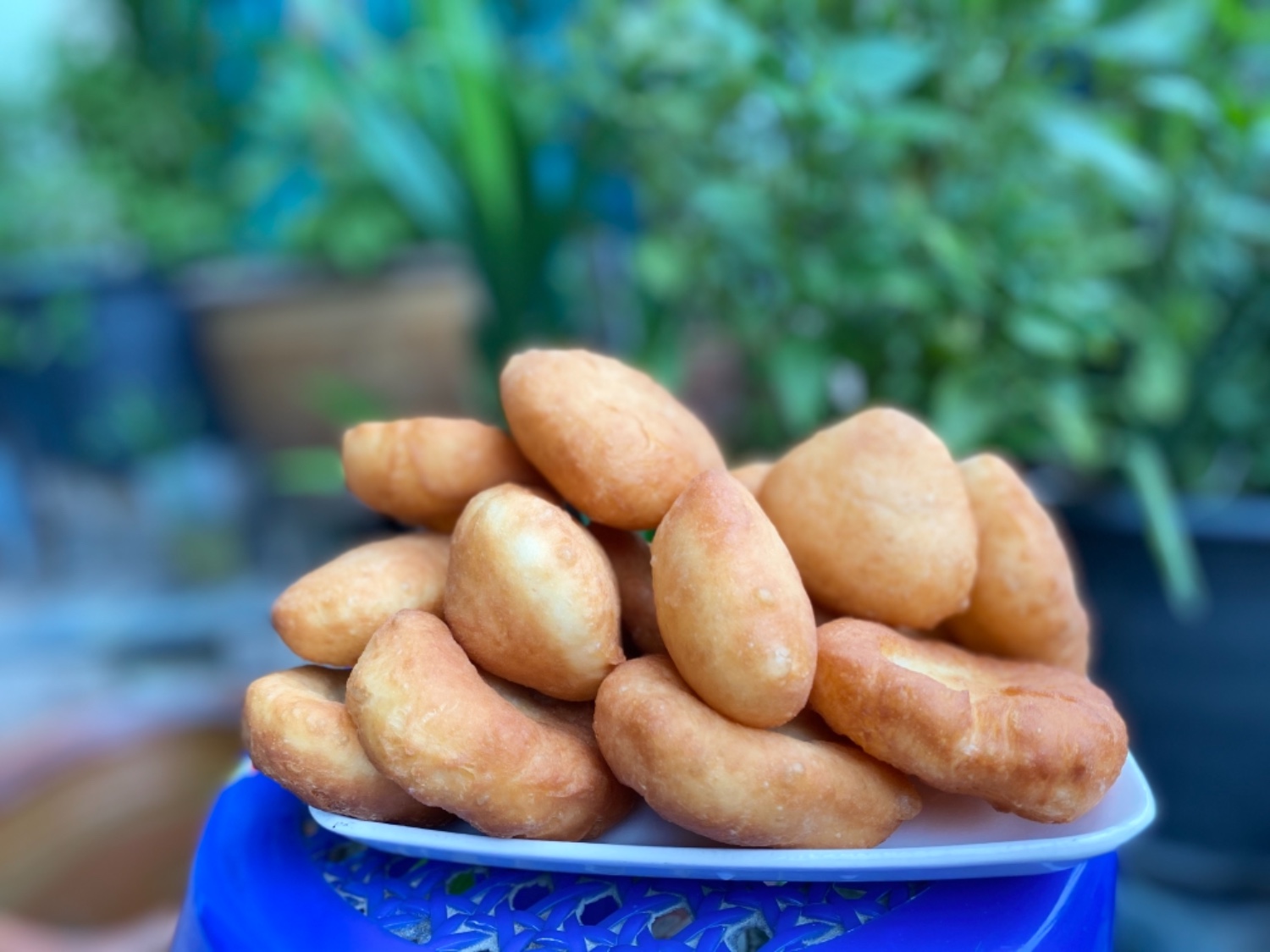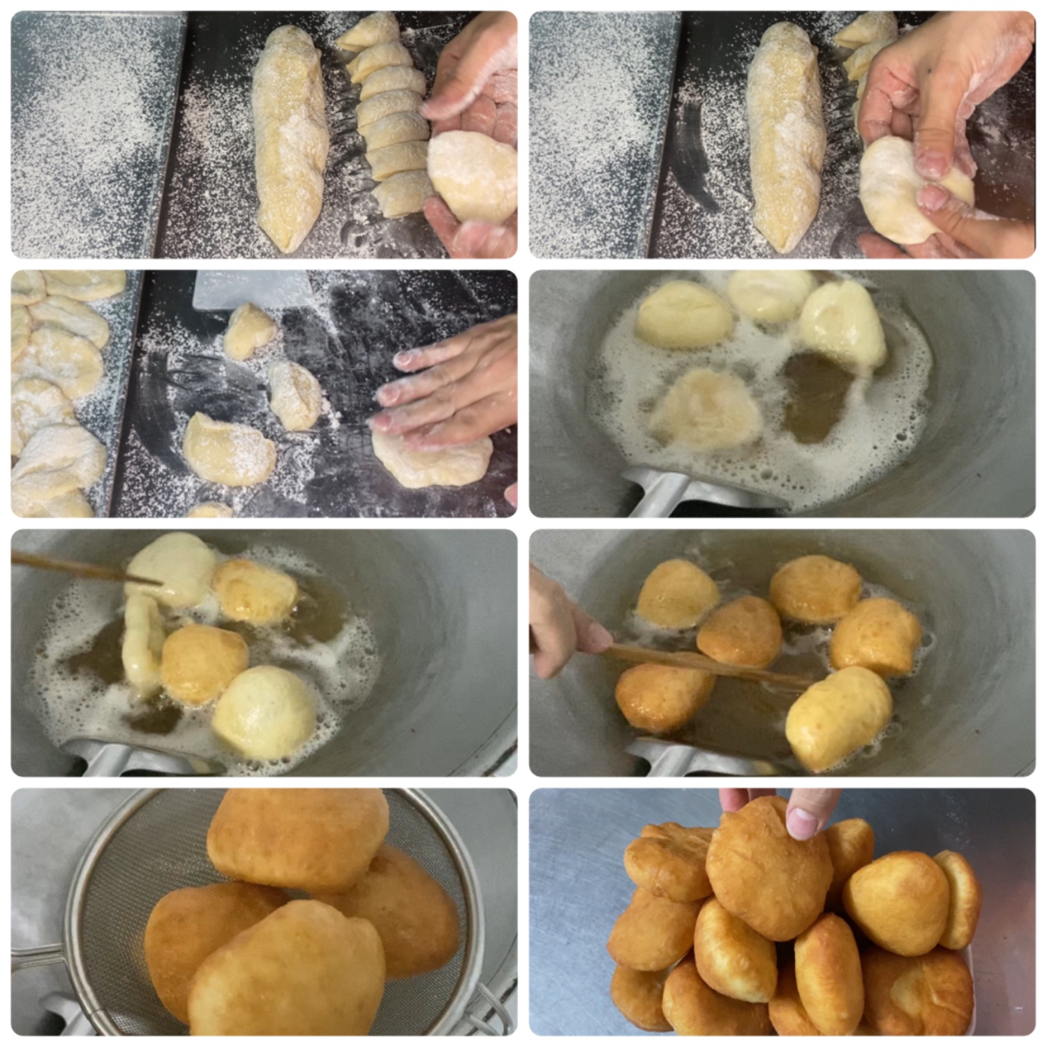 - ทอดกลับไปมาแป้งจะค่อยๆพองกลมสวยงาม เมื่อแป้งสุกสีเหลืองทอดนำขึ้นจากเตาให้สะเด็ดน้ำมัน