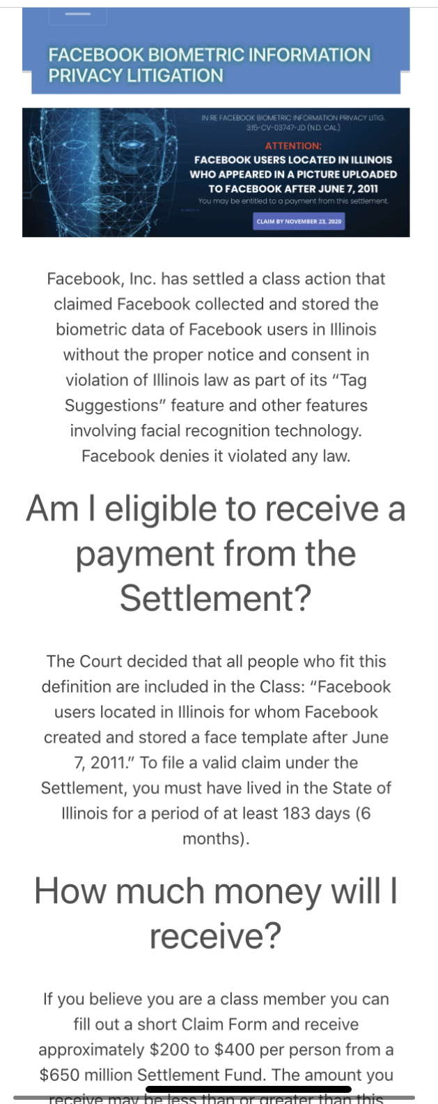 พอดีว่า Facebook ส่ง Notification มาว่าจะจ่ายเงินให้เป็นค่าเสียหายในการใช้งานข้อมูลผ่านการทำ Facial Recognition